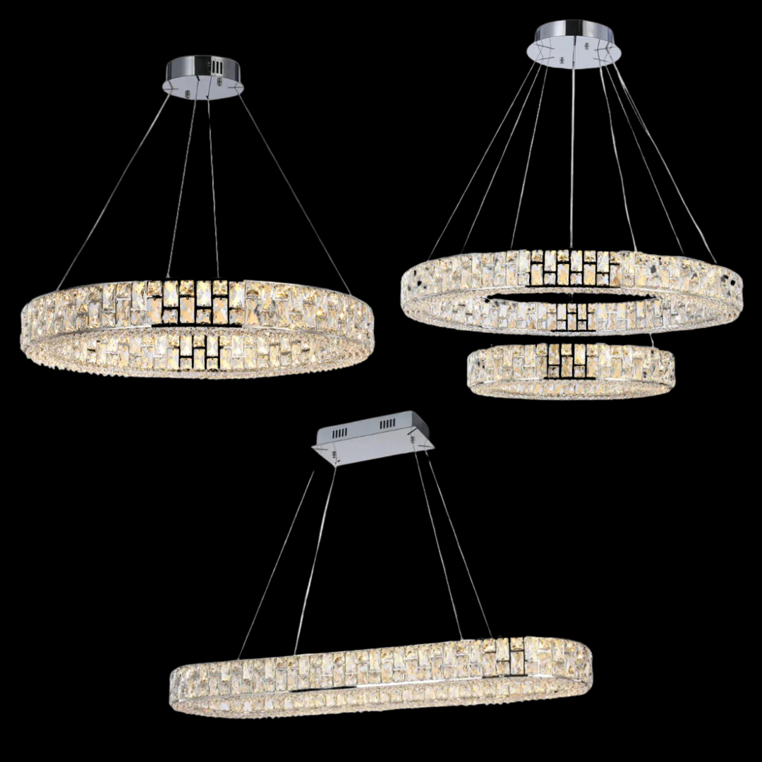 Light Luxury Round/Oval Spliced Crystal Chandelier for Living/Dining Room/Kitchen Island