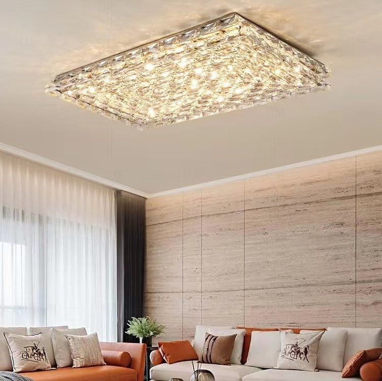 Extra Large Luxury Rectangle Light Flush Mount Crystal Chandelier for Living Room/Bedroom