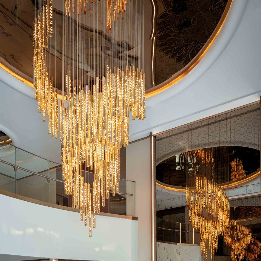 Modern Art Design Floating Leaves-inspired Glass Tube Chandelier for High-ceiling