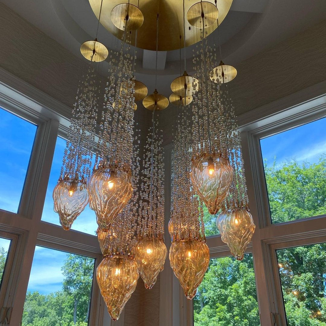 Modern Floating Blown Amber Glass Chandelier for High-ceiling