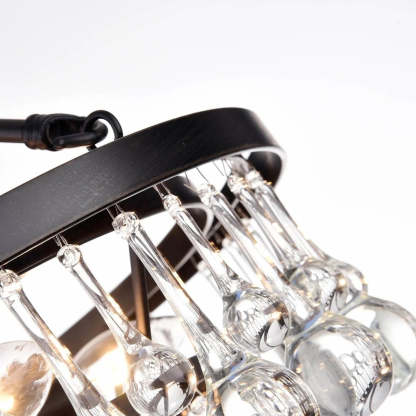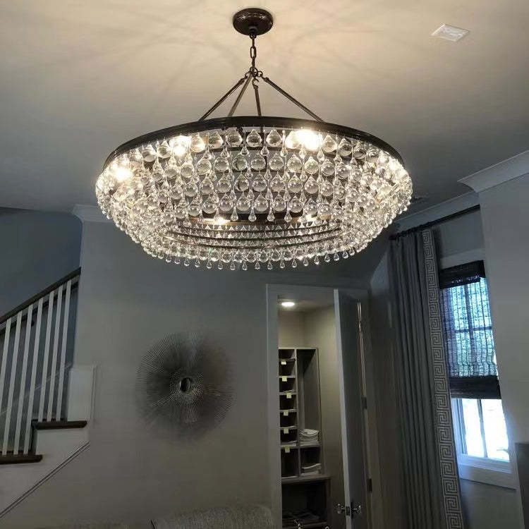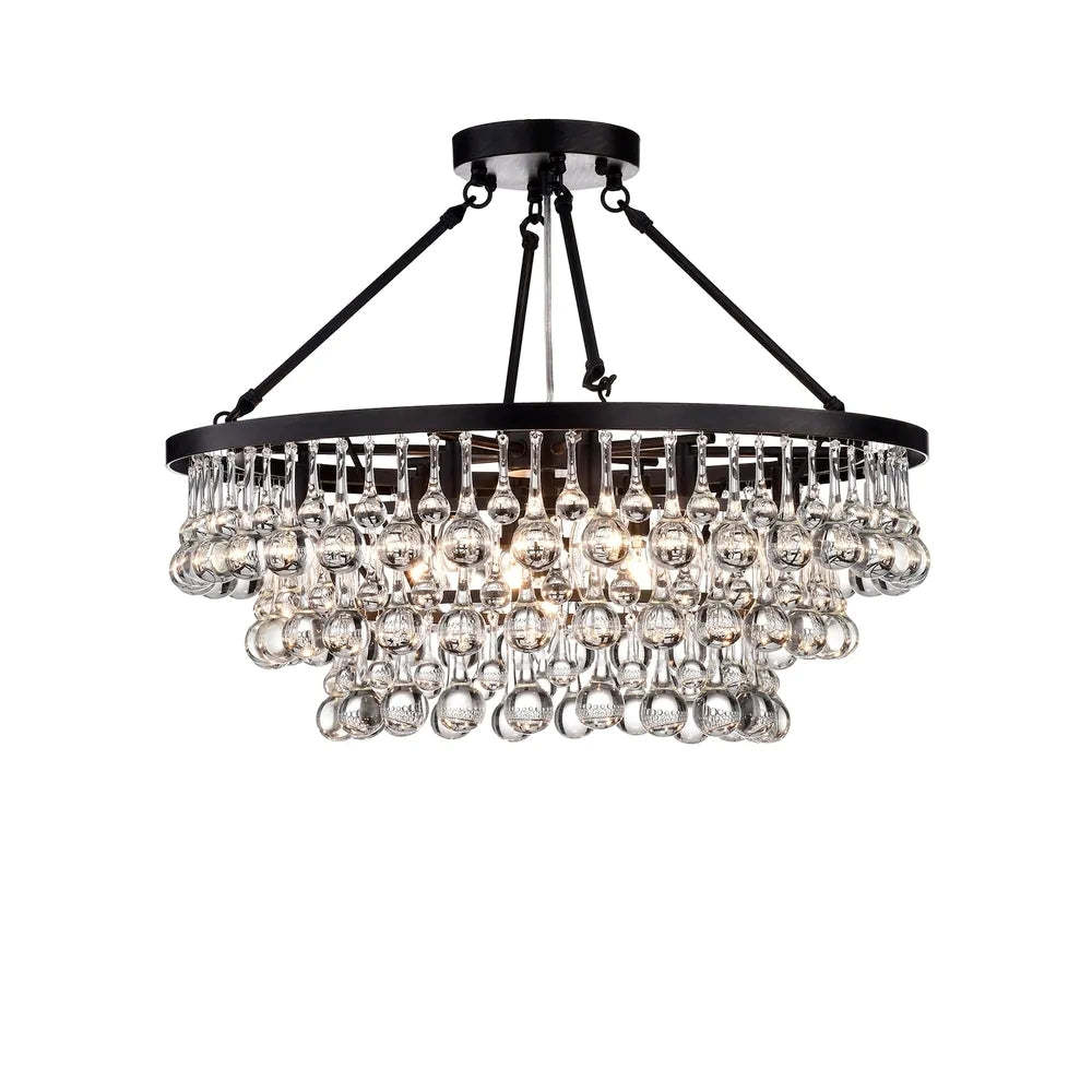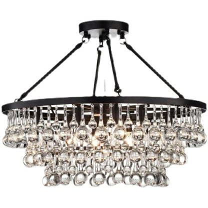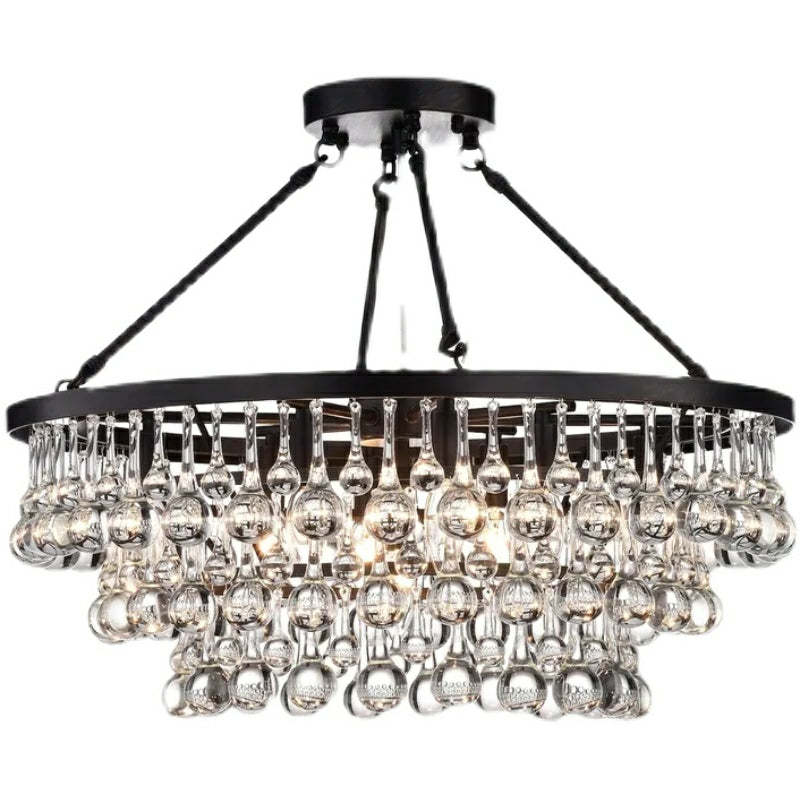 Black Finish Iron Semi Flush Mount Light Fixture Round Crystal Drops Ceiling Chandelier For Living Room