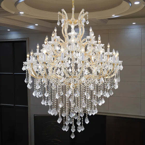 Classic 36-Light Candle Light Crystal Chandelier for High Ceilings