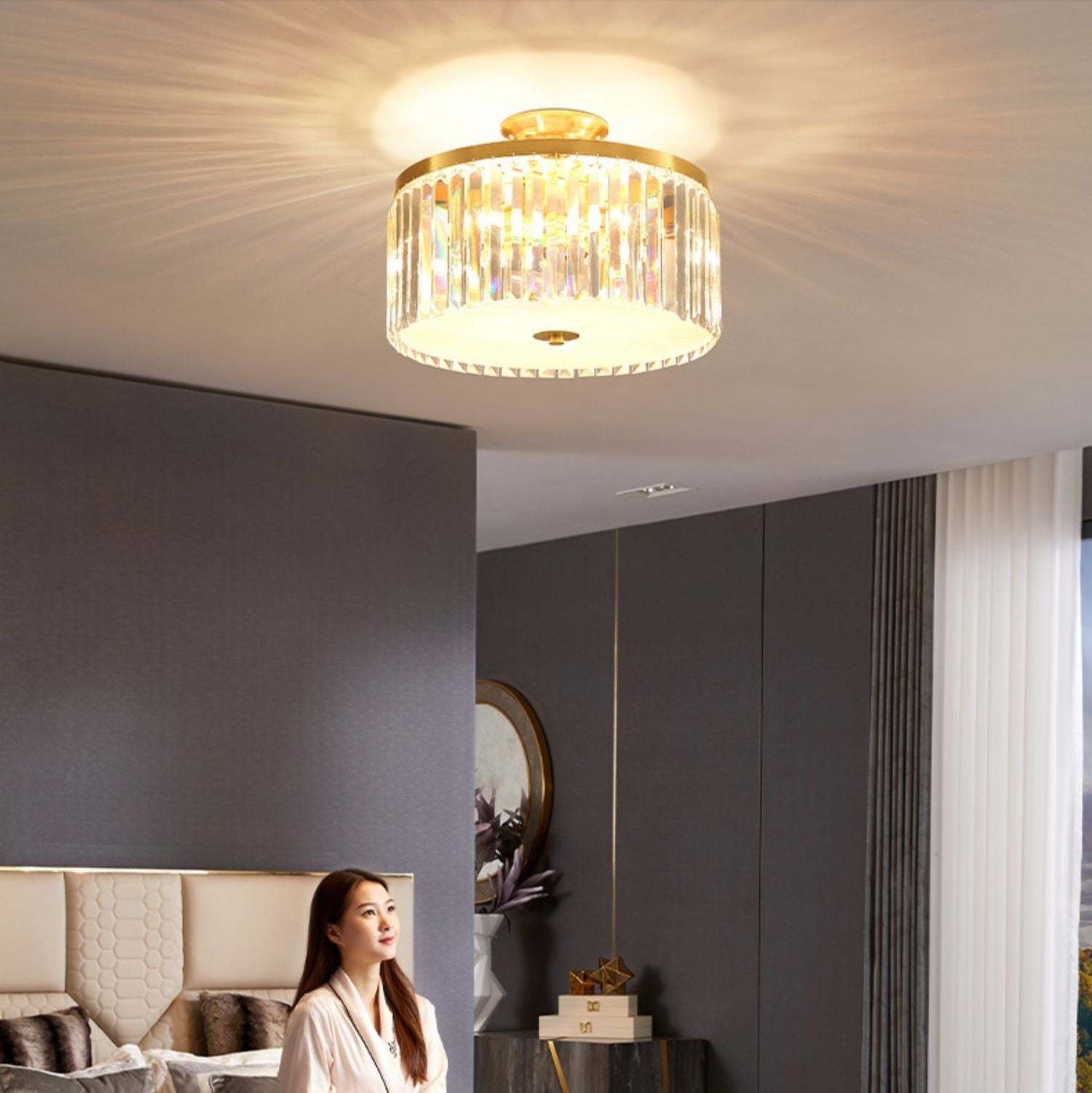 D16" LED Decorative Round Ceiling Lighting Fixture Mini Living/ Bedroom Gold Flush Mount Crystal Chandelier