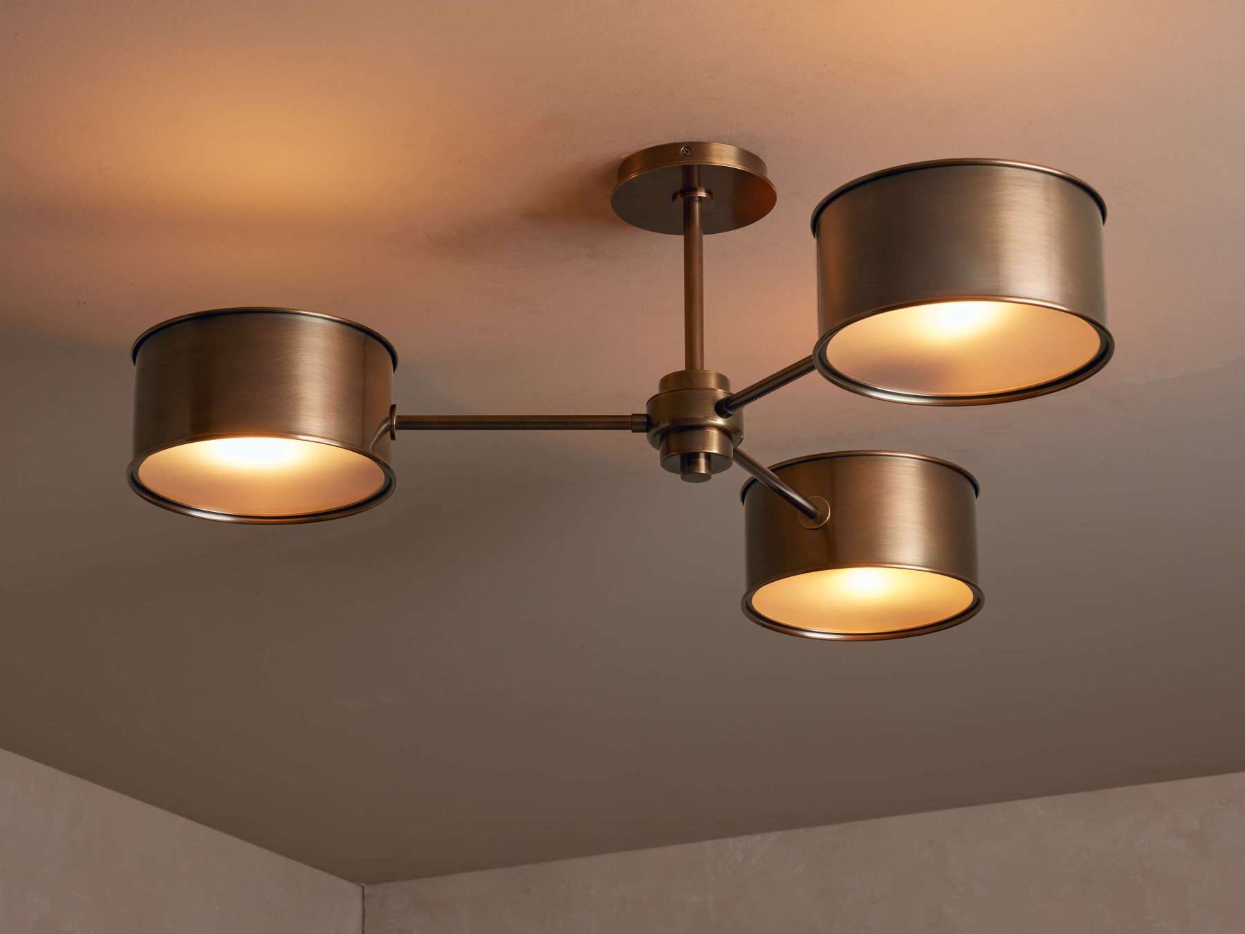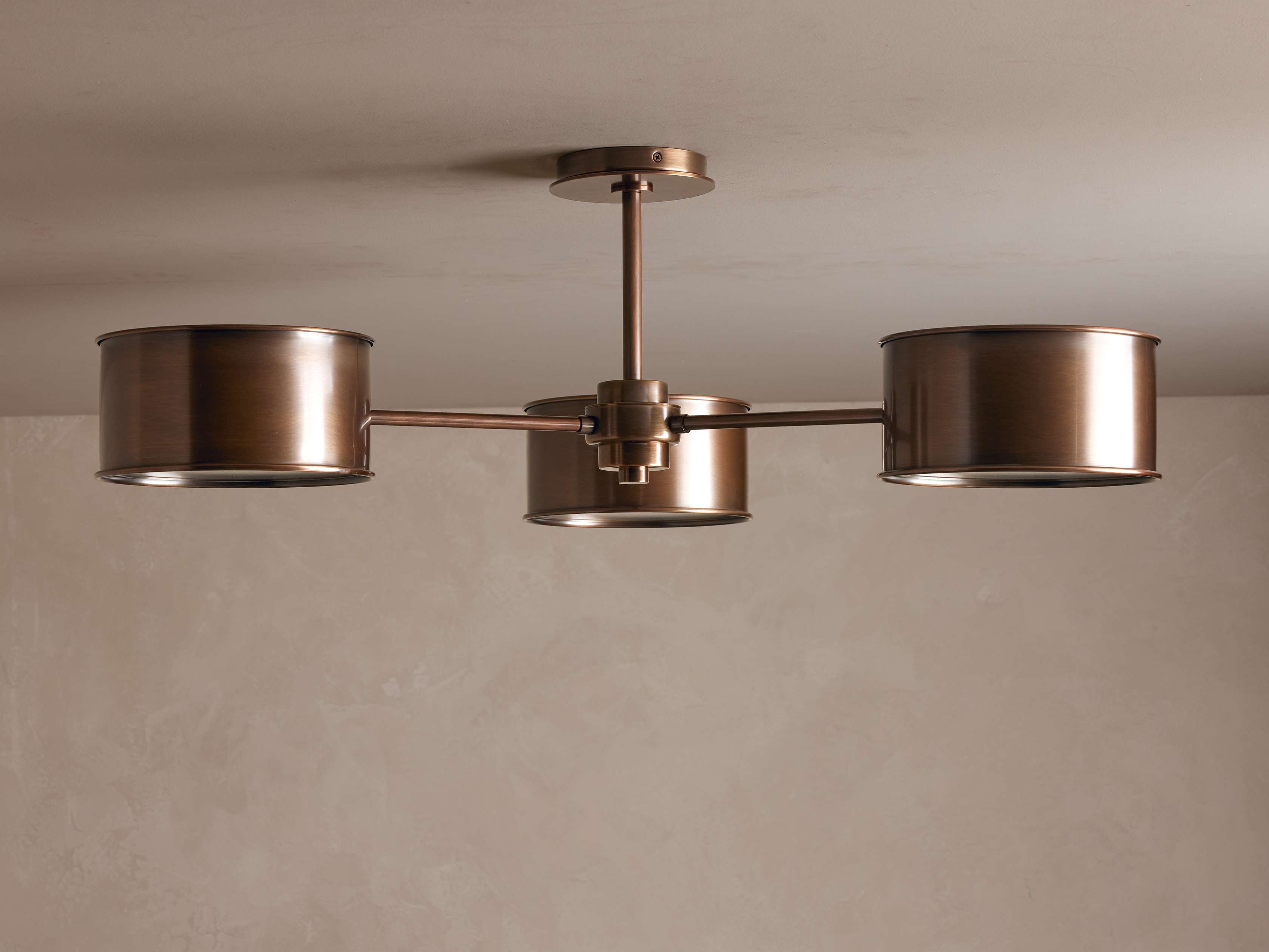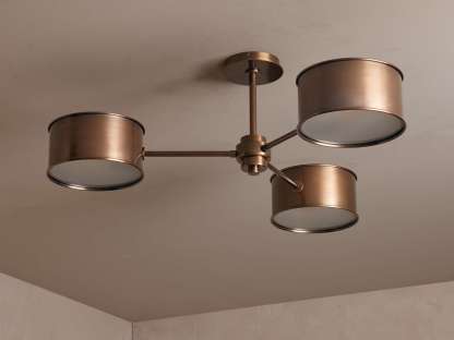 • Warm bronze fixtures include bronze-finished metal shades; antique brass fixtures include brass-finished metal shades.