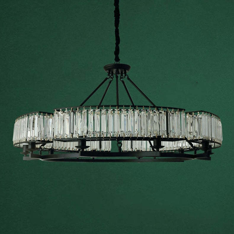 Decorative 6/ 8/ 10/ 12-Light Crystal Ceiling Chandelier Triangular Prism Island Light Fixture Metal Shade for Living Room