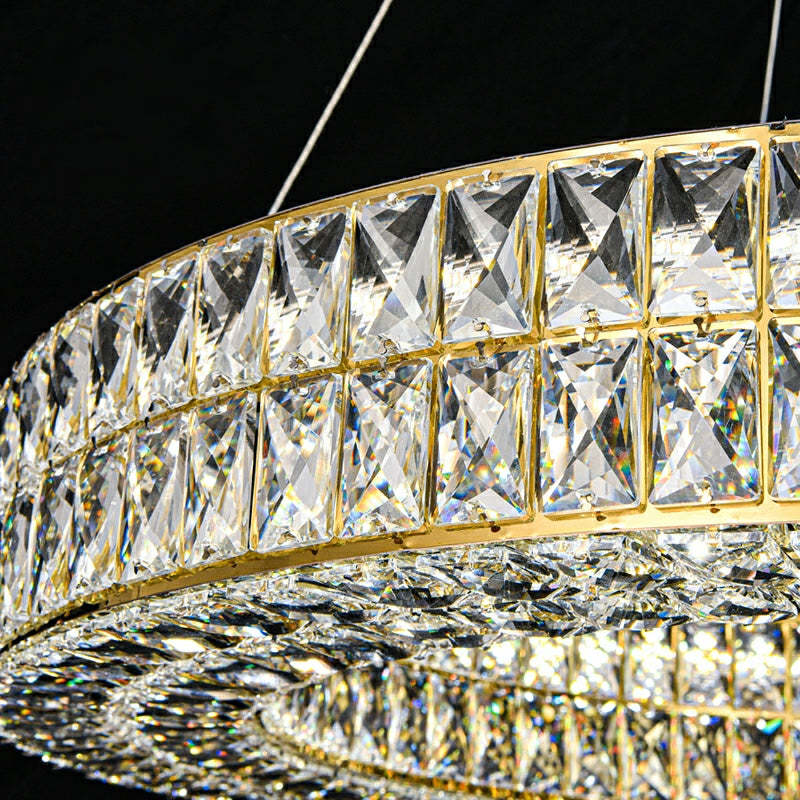 Decorative Crystal Ring Pendant Chandelier For Living Room Luxury Round Hanging Light In Gold Finish