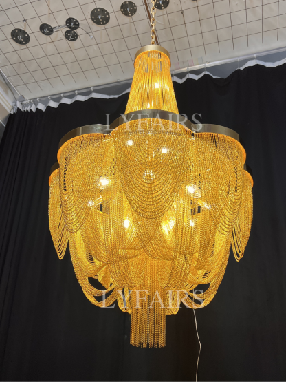 Designer Models Oversized Aluminium Long Tassel Pendant Chandelier for Living Room/Staircase/Villa