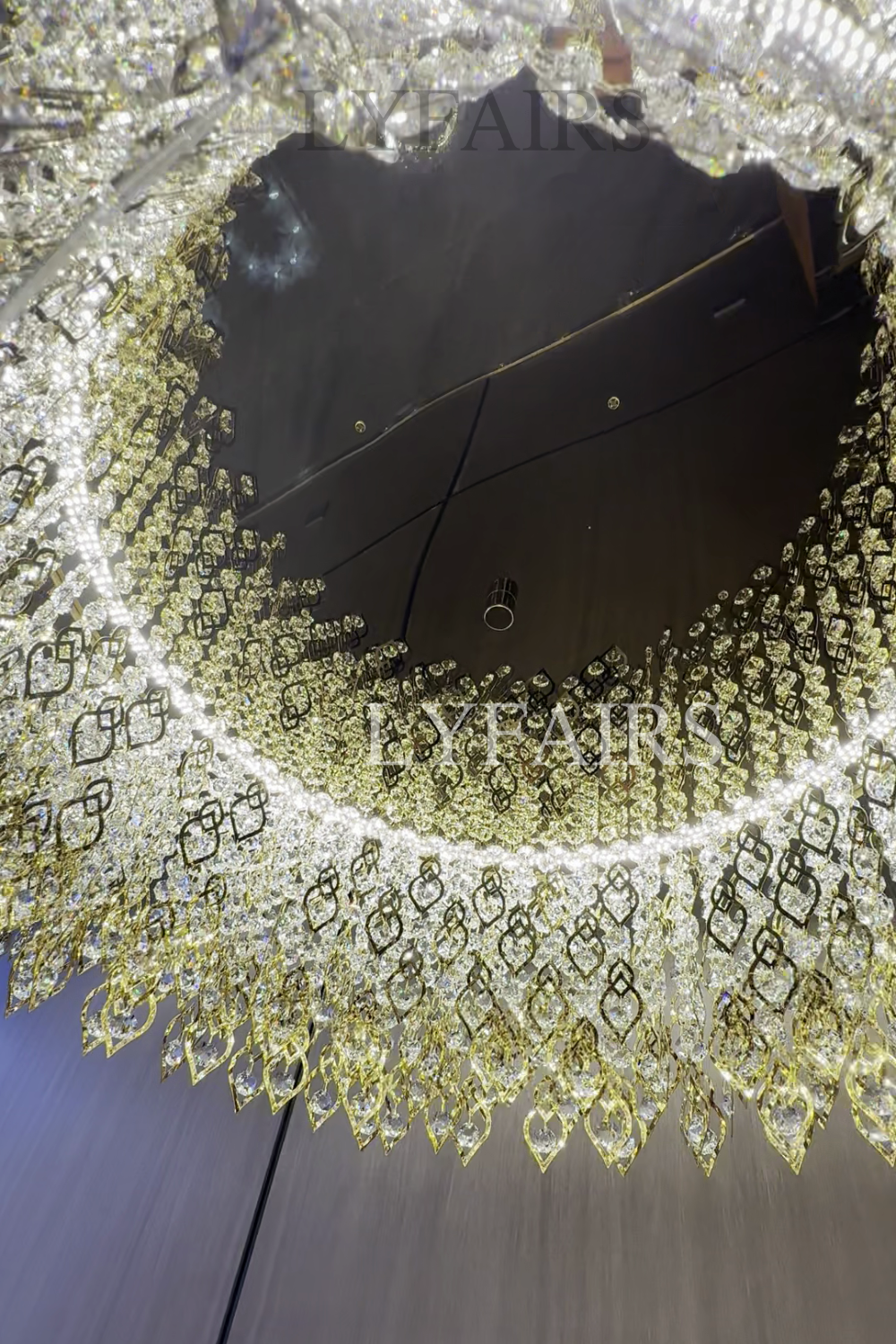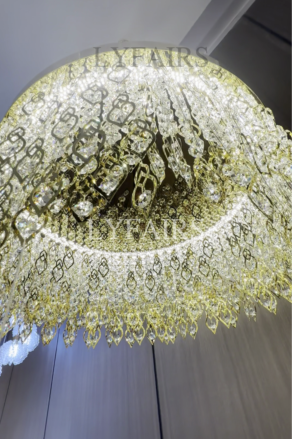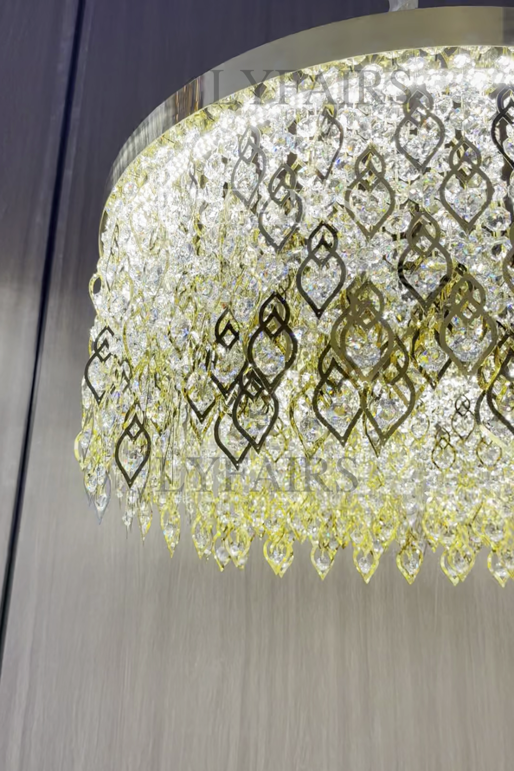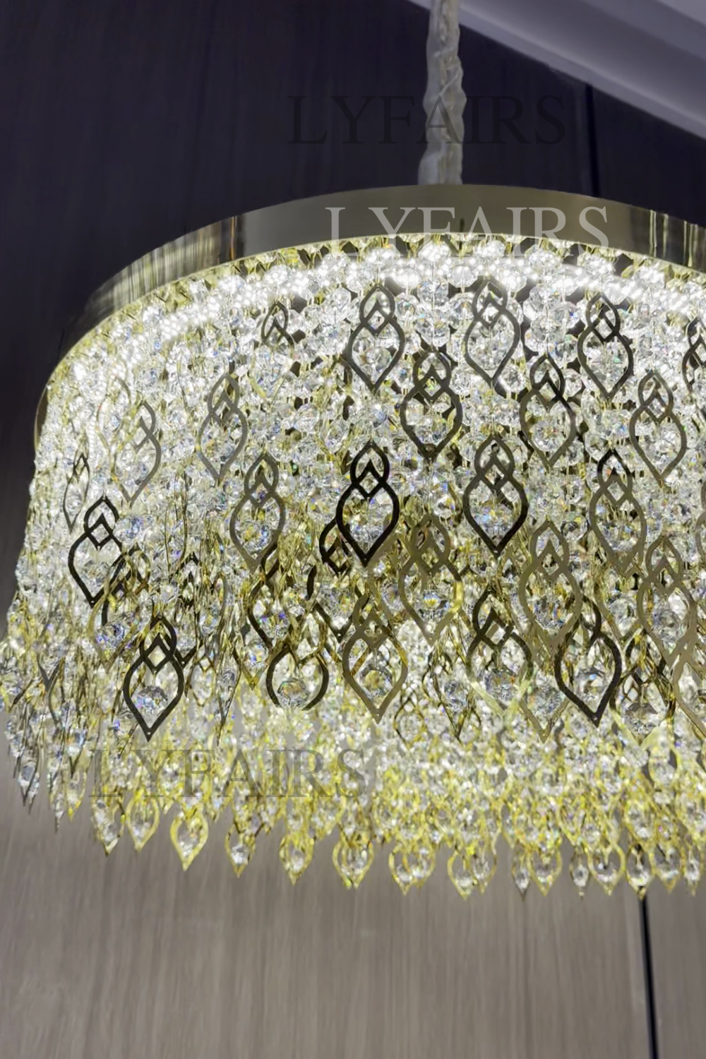 Elegant Crystal Tassel Gold Leaf Round Chandelier for Low Ceilings