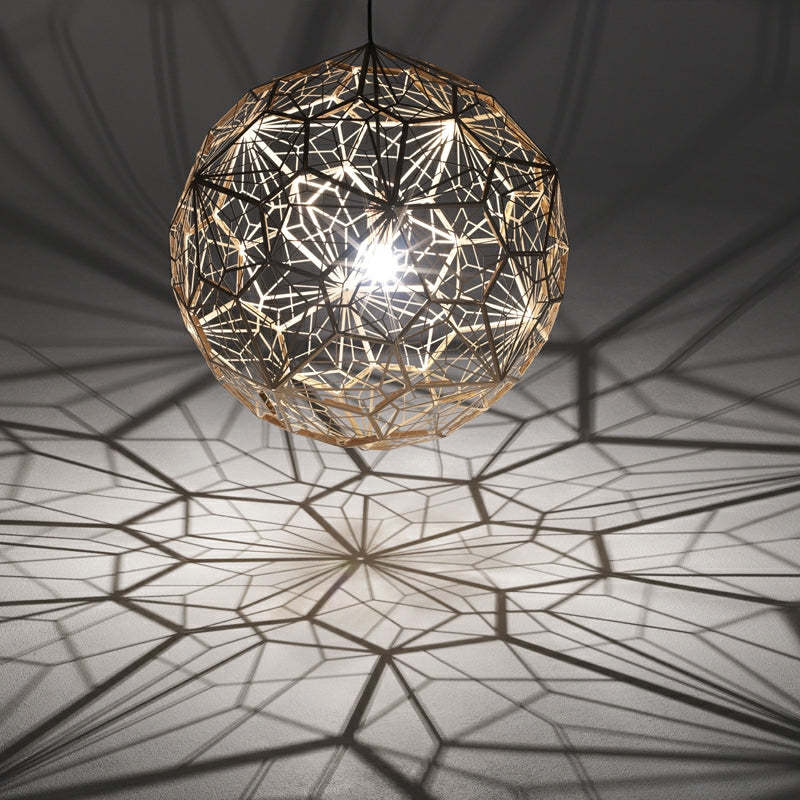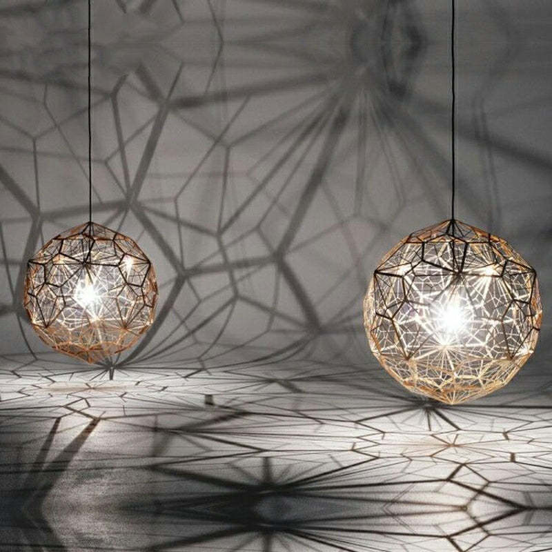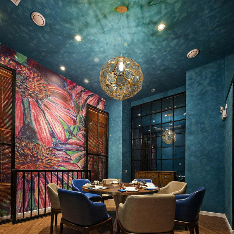 Elegant Italian Designer Single 1-Light Textured Geometric Pendant Lamp With Bulbs Diamond Ball Shaped Ceiling Light Fixture In Gold Finish