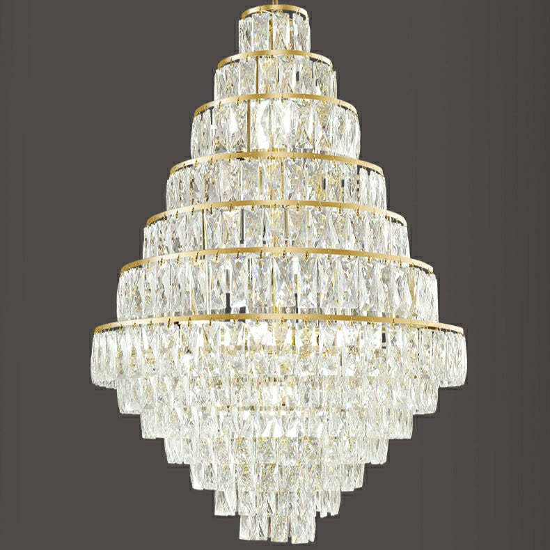 Extra Large Decorative Crystal Chandelier Foyer Hall Ceiling Light Fixture For Staircase In Gold/ Chrome
