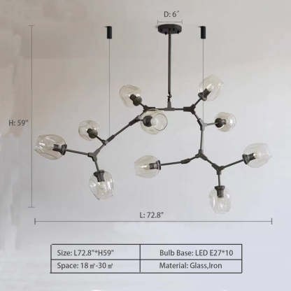 Extra Large Industrial Fashion Branch Multiple Glass Pendant Chandelier for Living/Dining Room