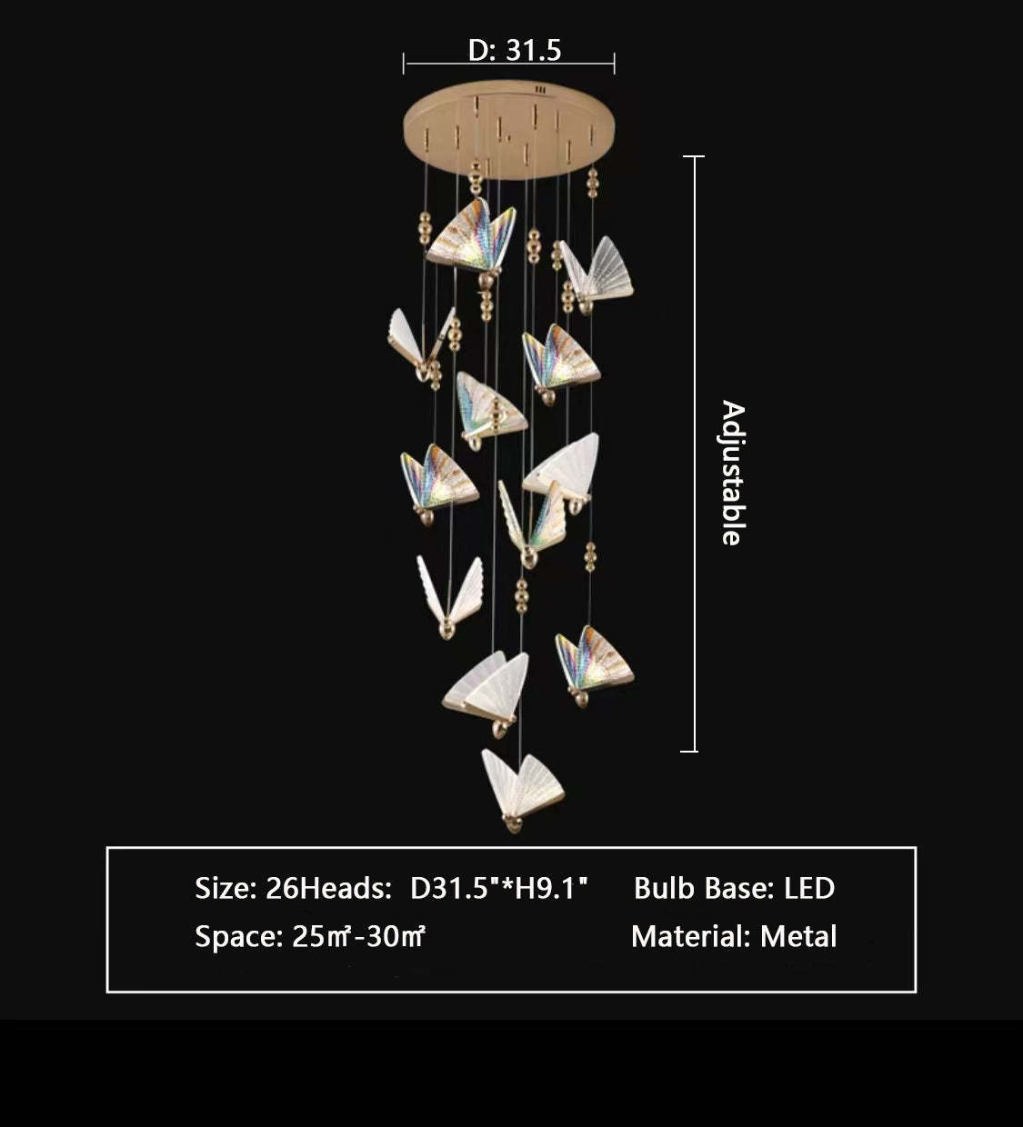 Extra Large Light Luxury Art Butterfly Pendant Chandelier for Bedroom/Dining Room/Staircase