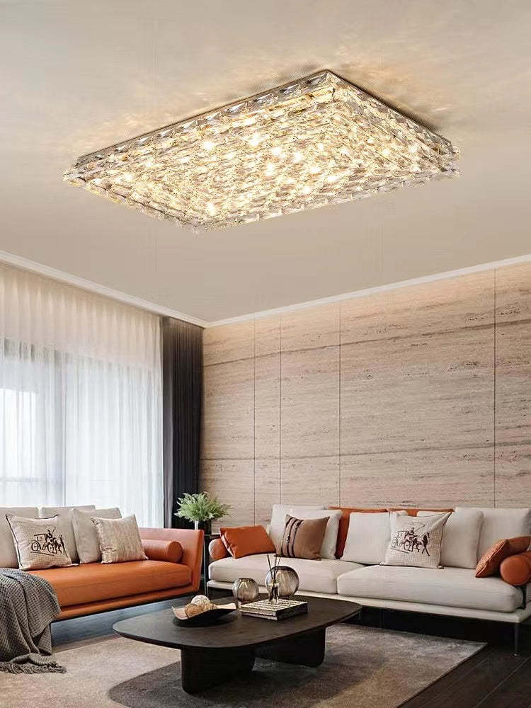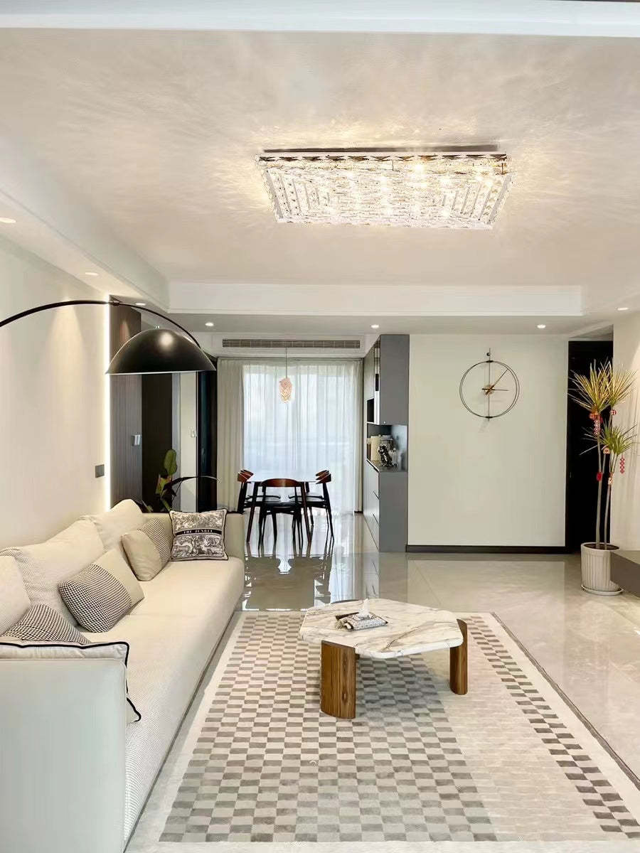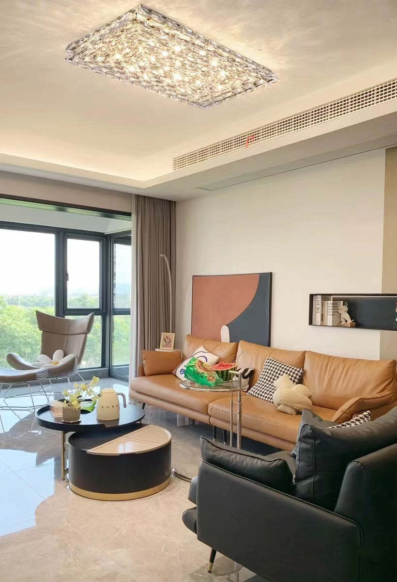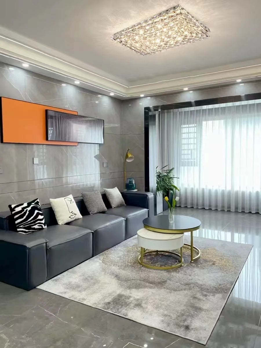 Extra Large Luxury Rectangle Light Flush Mount Crystal Chandelier for Living Room/Bedroom