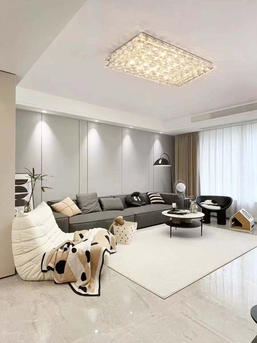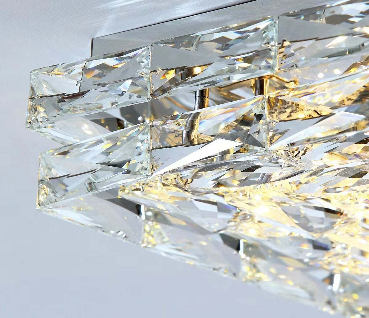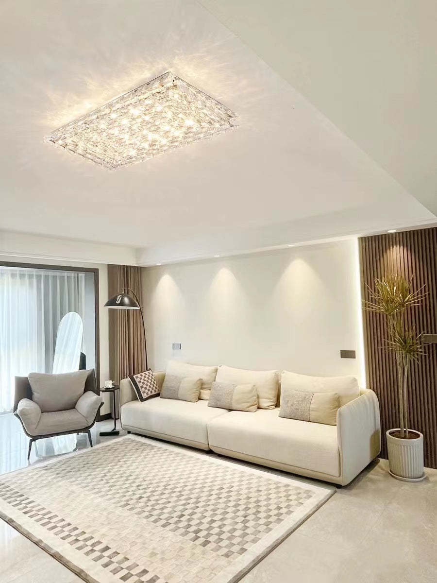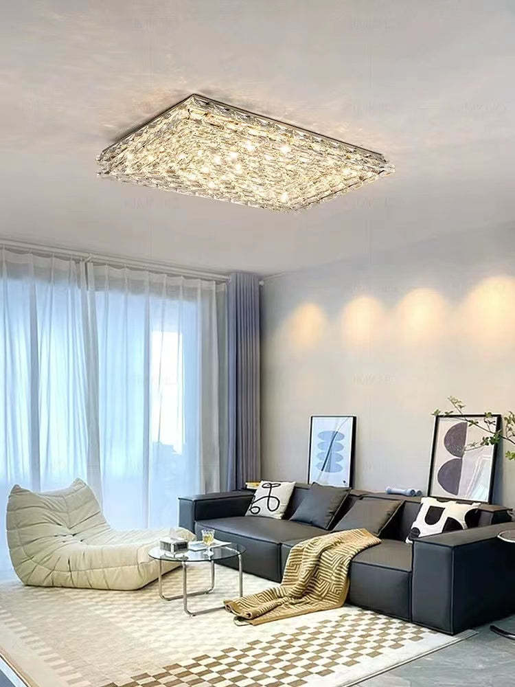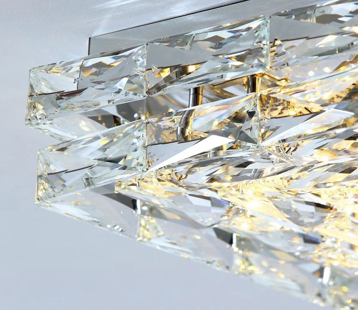 Extra Large Luxury Rectangle Light Flush Mount Crystal Chandelier for Living Room/Bedroom