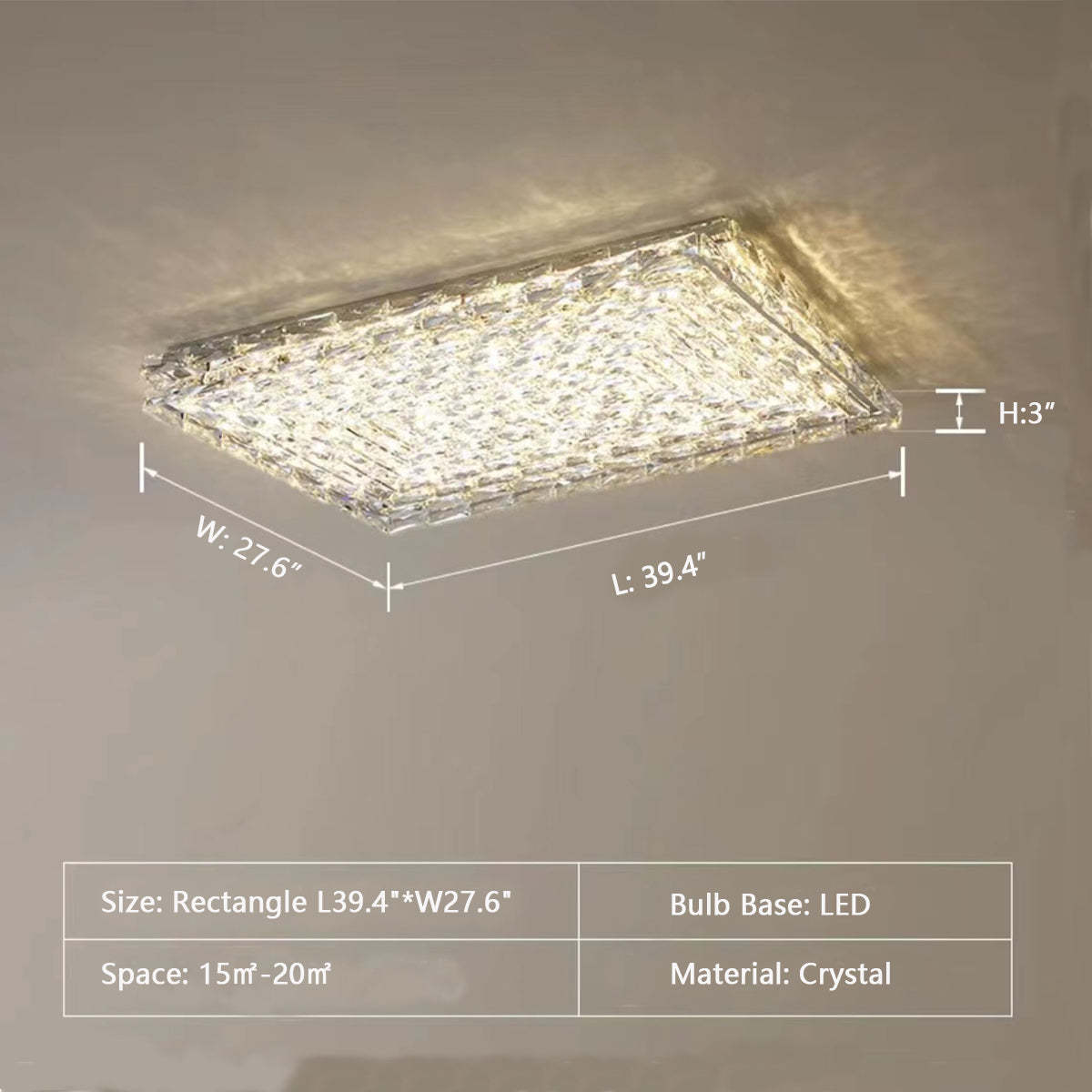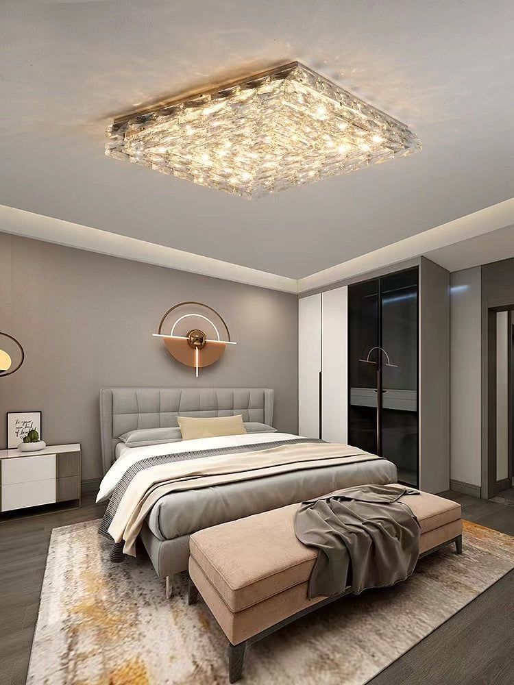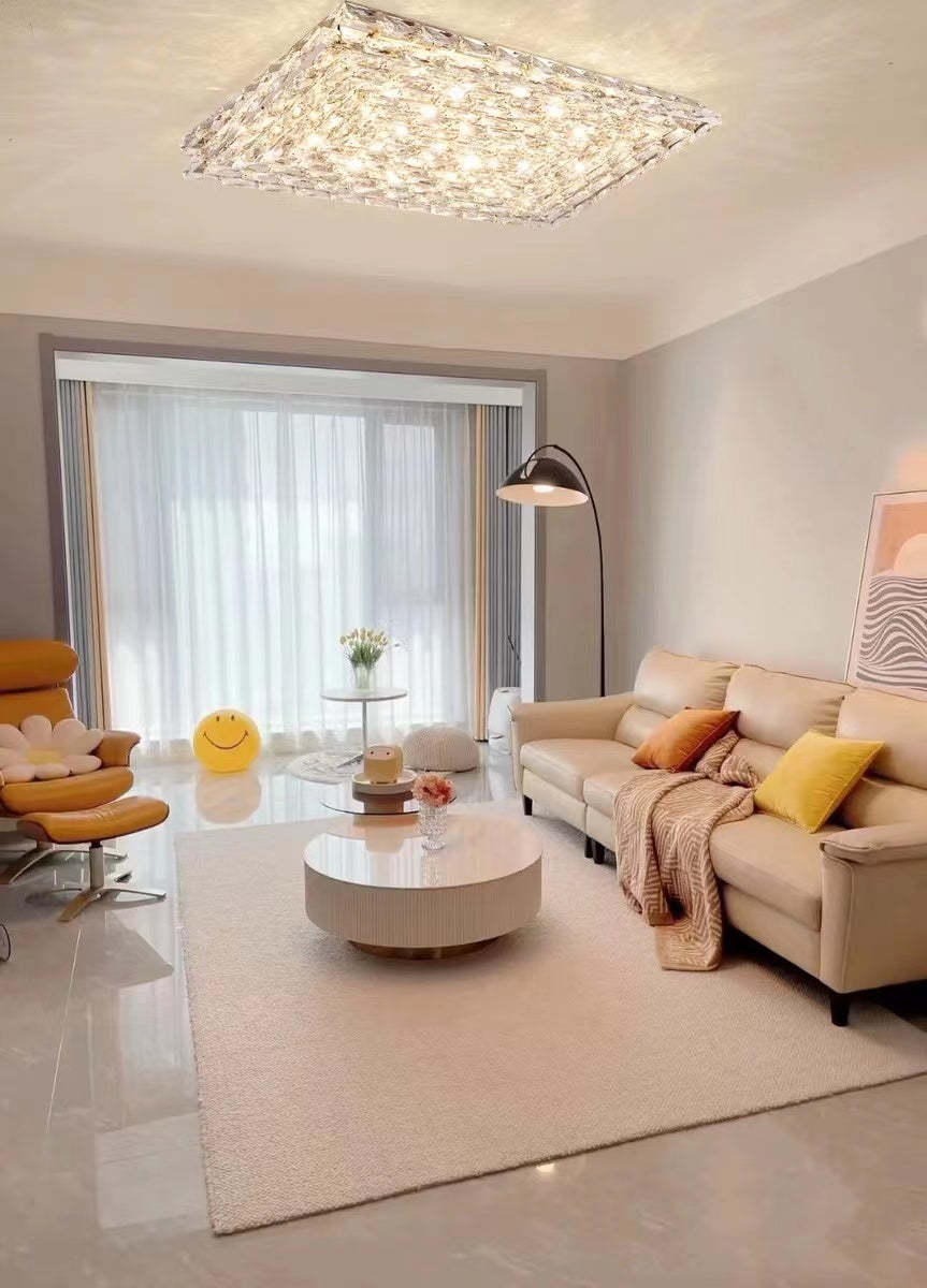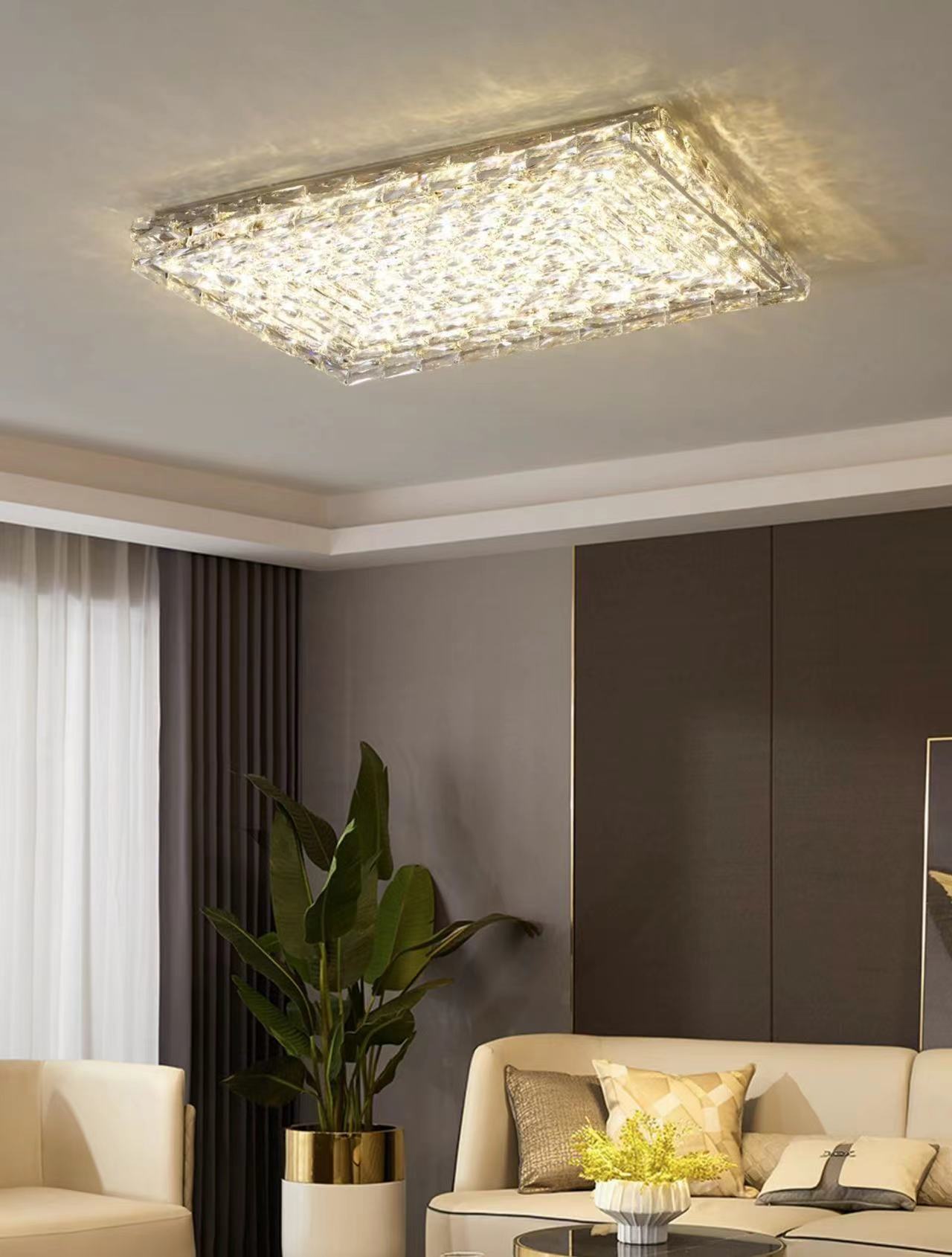 Extra Large Luxury Rectangle Light Flush Mount Crystal Chandelier for Living Room/Bedroom