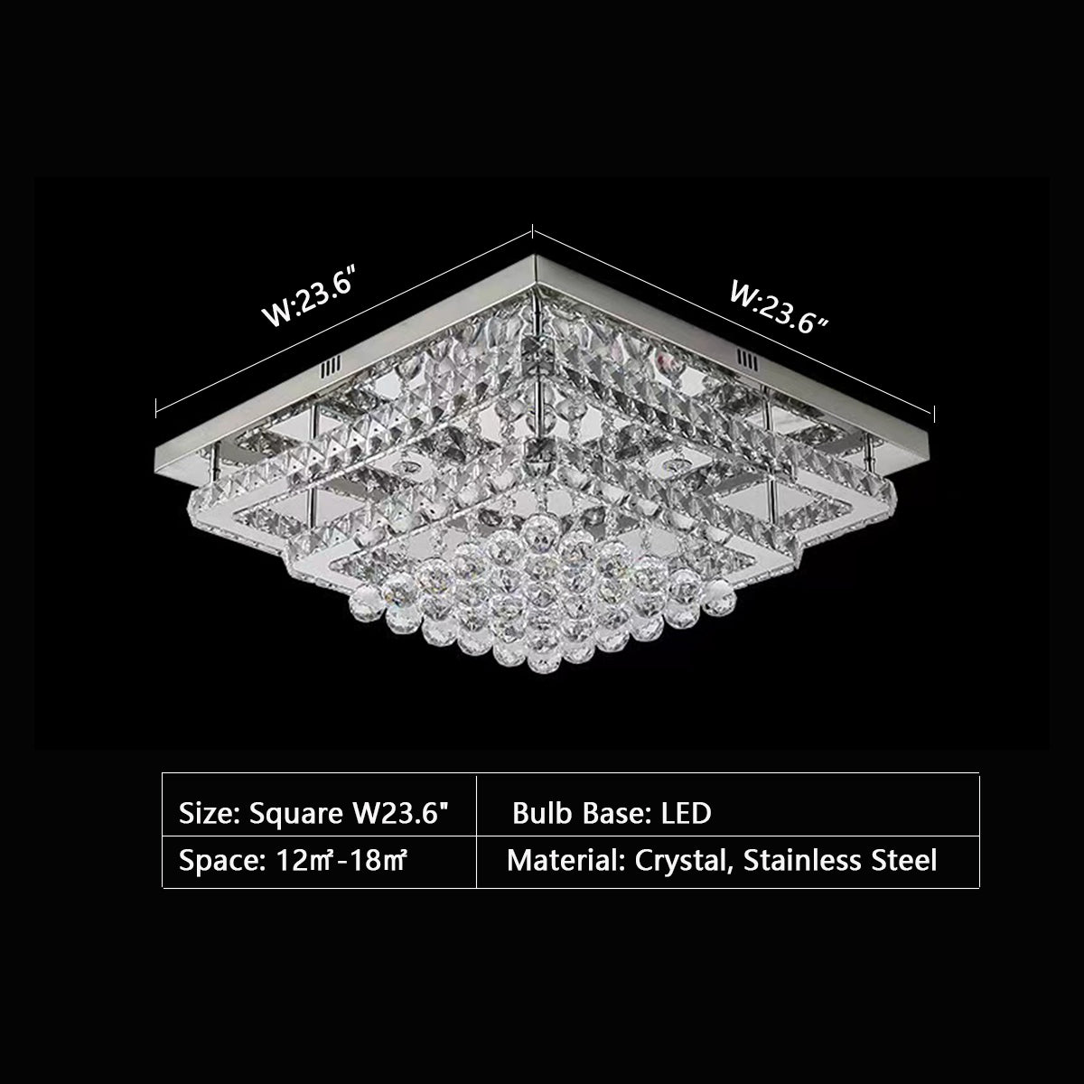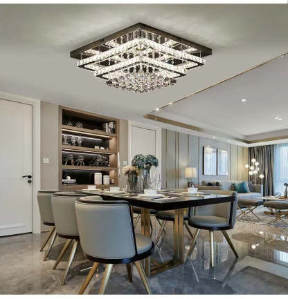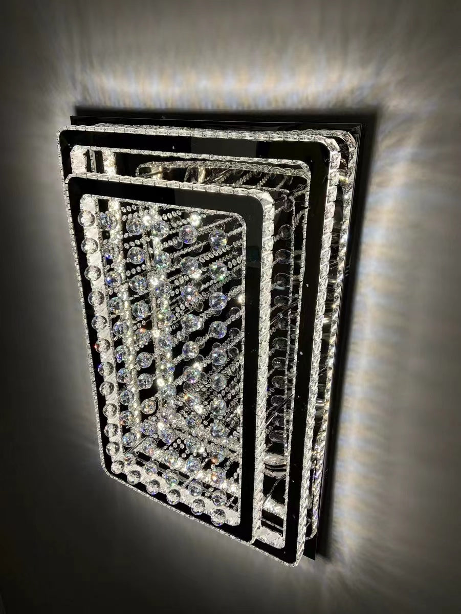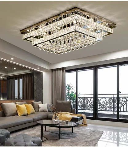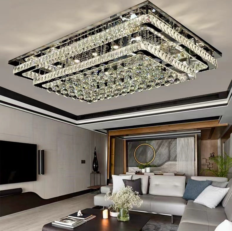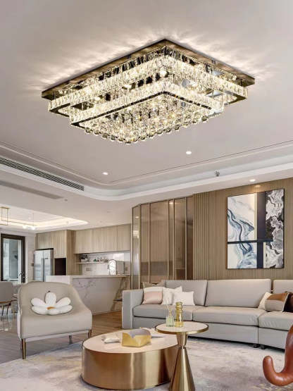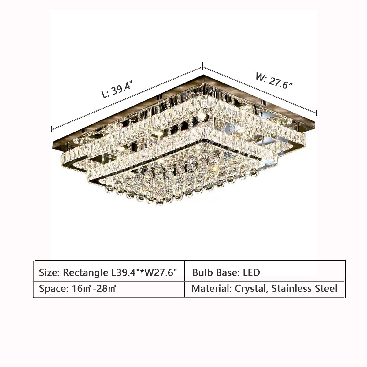 Extra Large Two Layers Rectangle Crystal Flush Mount Chandelier for Living Room/Bedroom