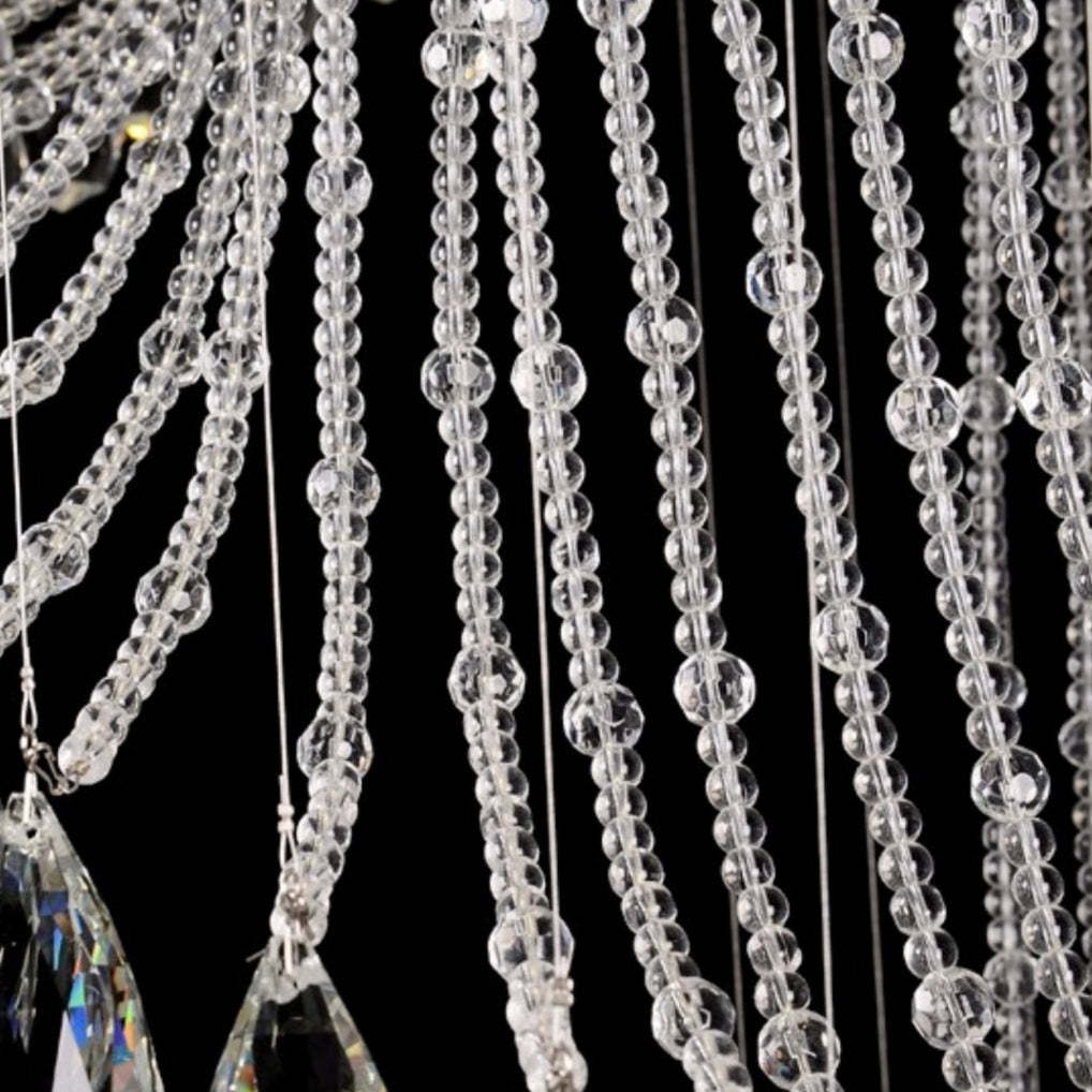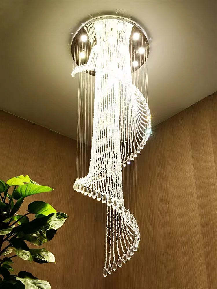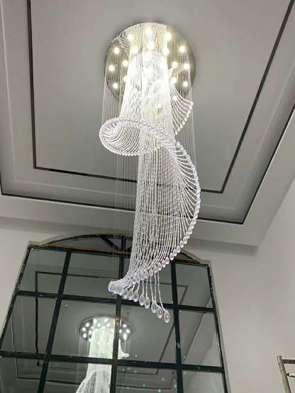 Flush Mounted Spiral Crystal Drops Chandelier Round LED Ceiling Lighting Fixture For Foyer Staircase/ Hotel Entrance
