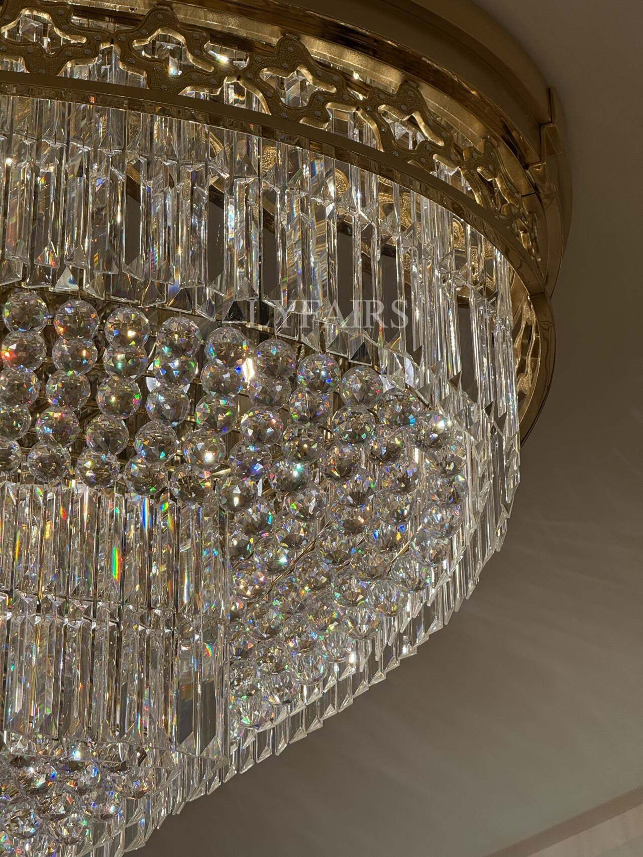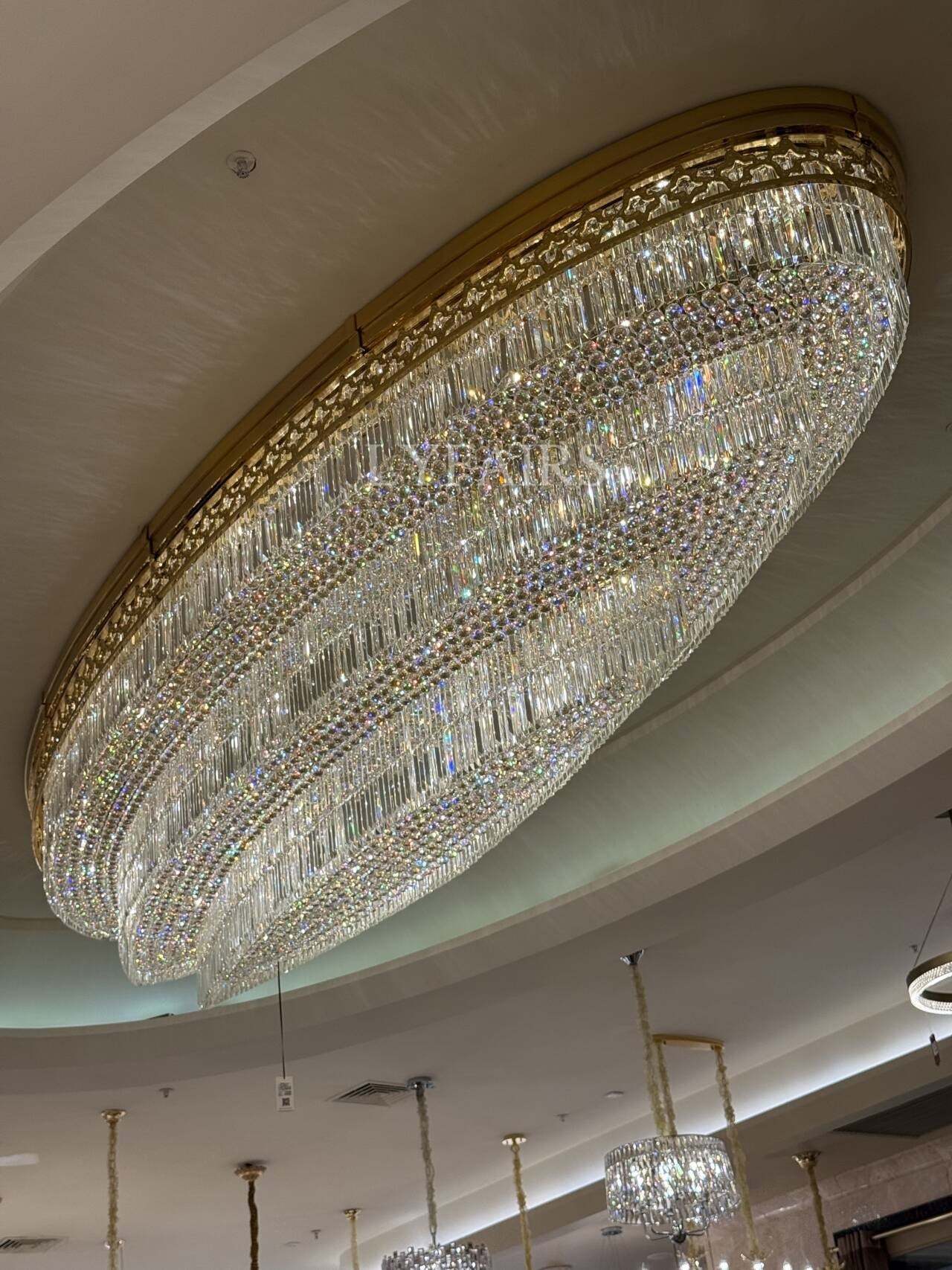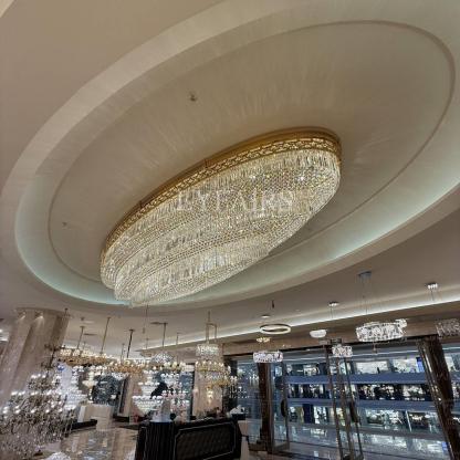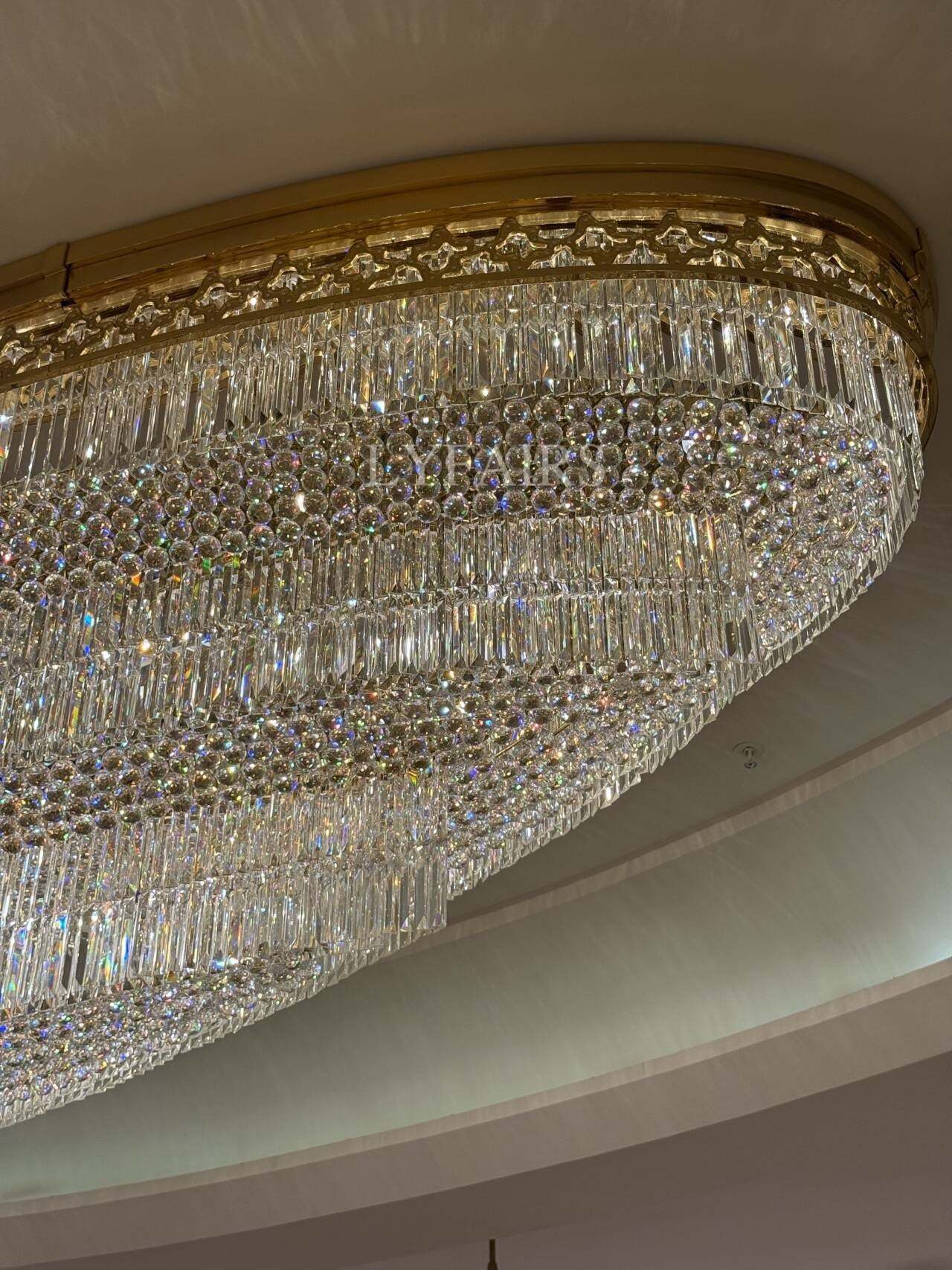 Gold Era Flush Mounted Oval Crystal Chandelier for Hotel/Restaurant/Villa