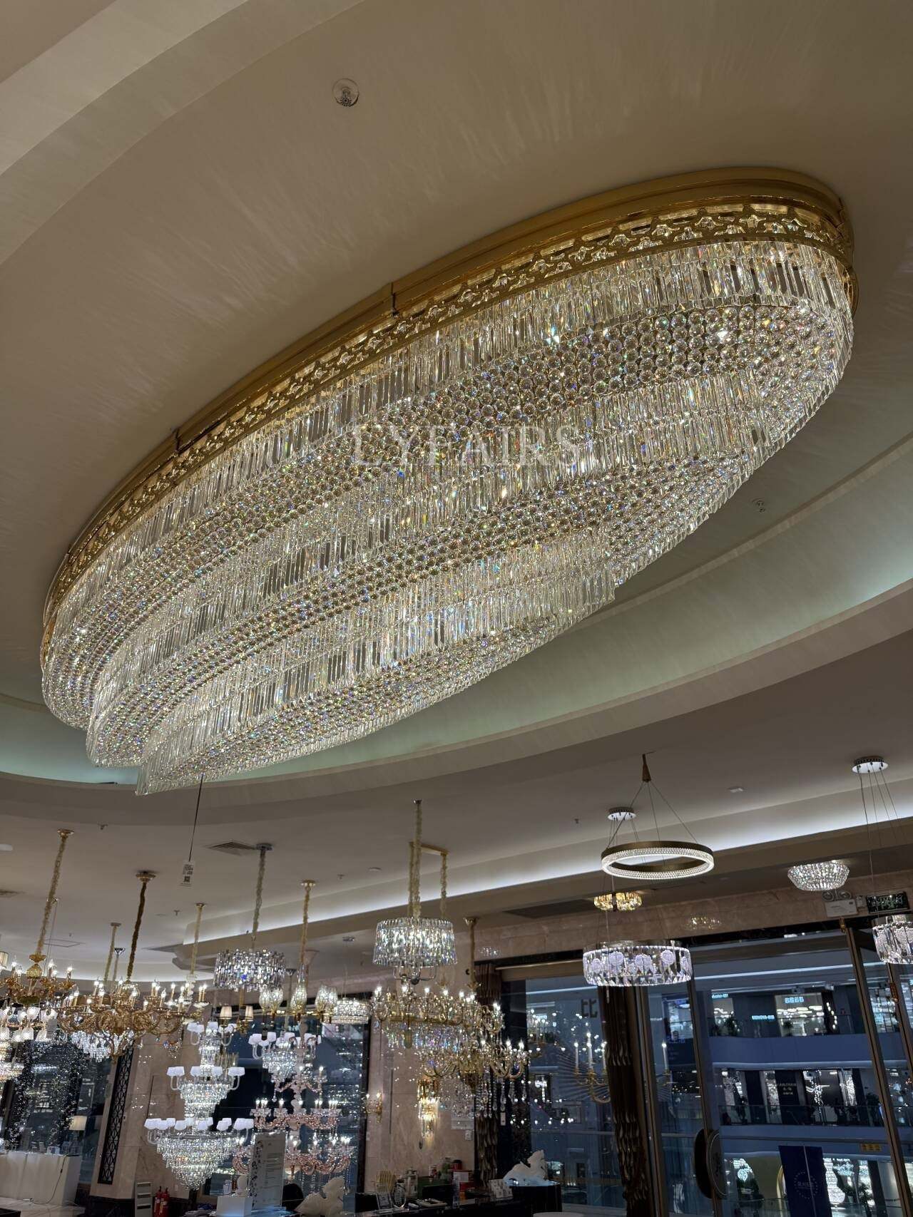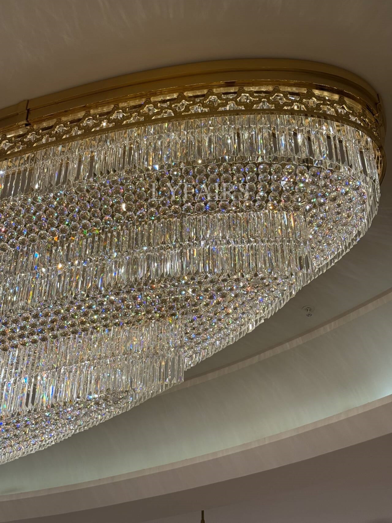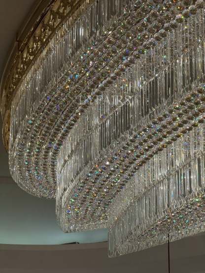 Gold Era Flush Mounted Oval Crystal Chandelier for Hotel/Restaurant/Villa