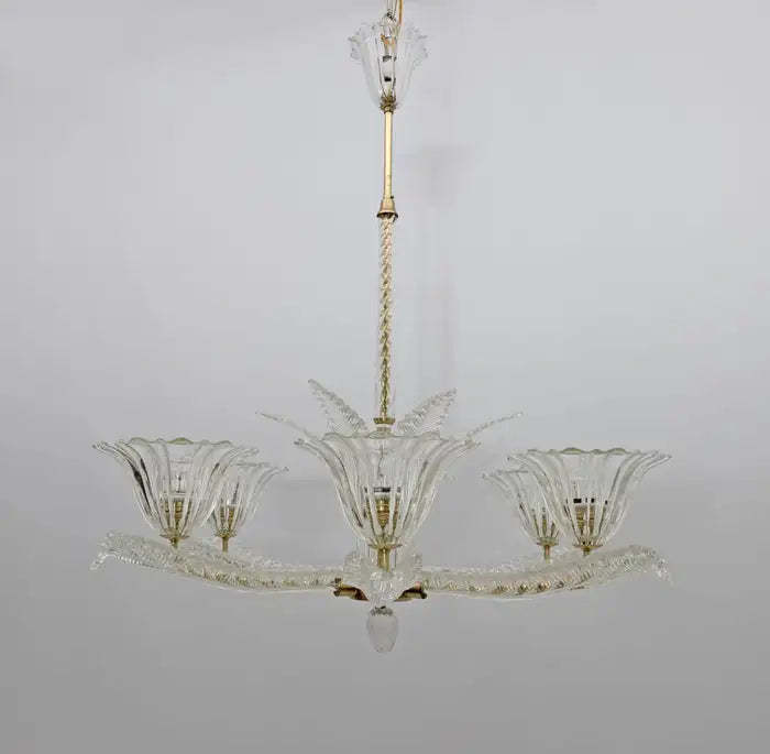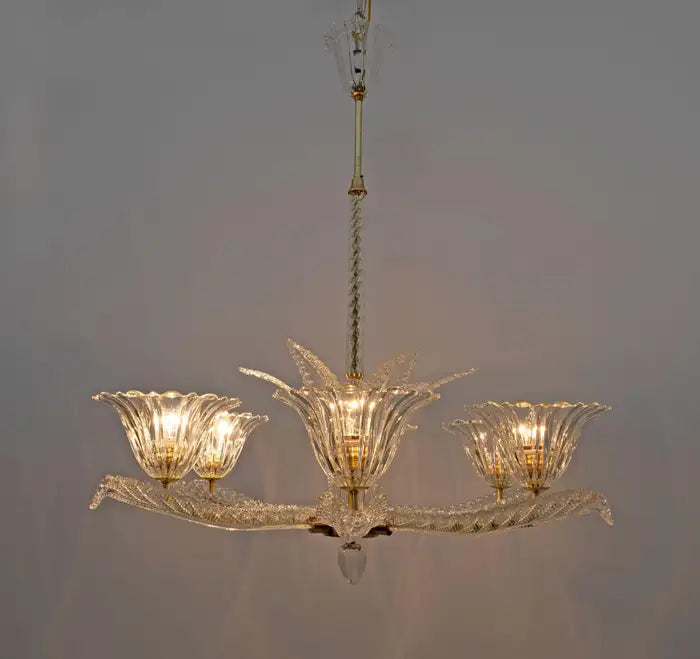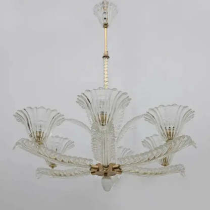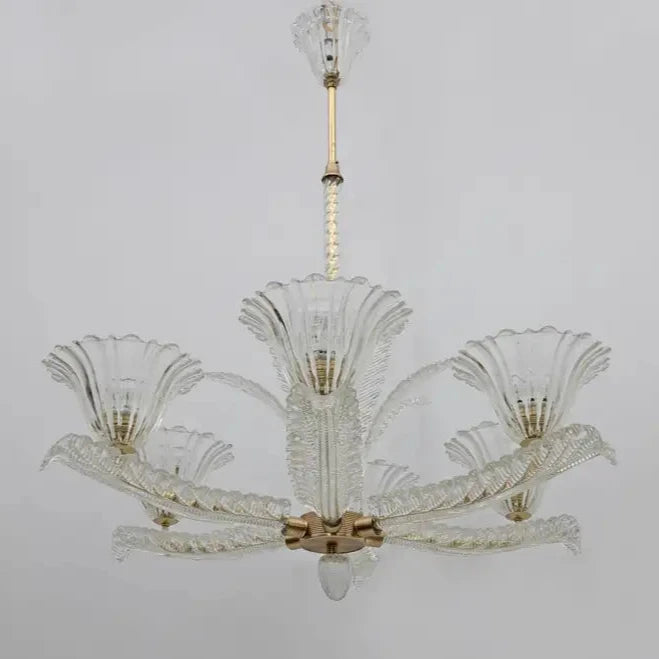 Vintage Italian 6-Arm Glass Chandelier for Low-ceiling Bedroom/Dining Room