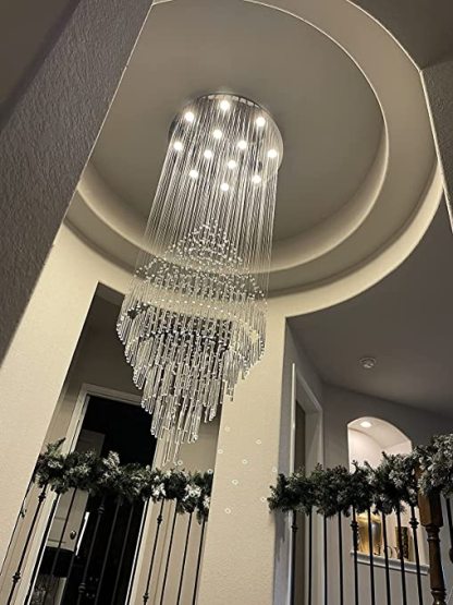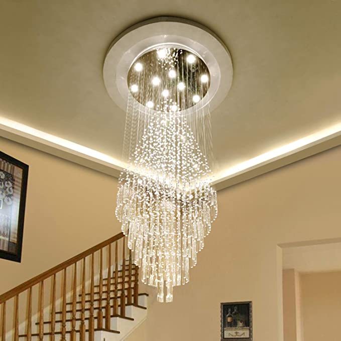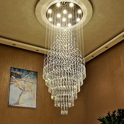 Large Foyer Crystal Chandelier Raindrop Crystal Flush Mount Ceiling Light Fixture For Entryway/ Staircase