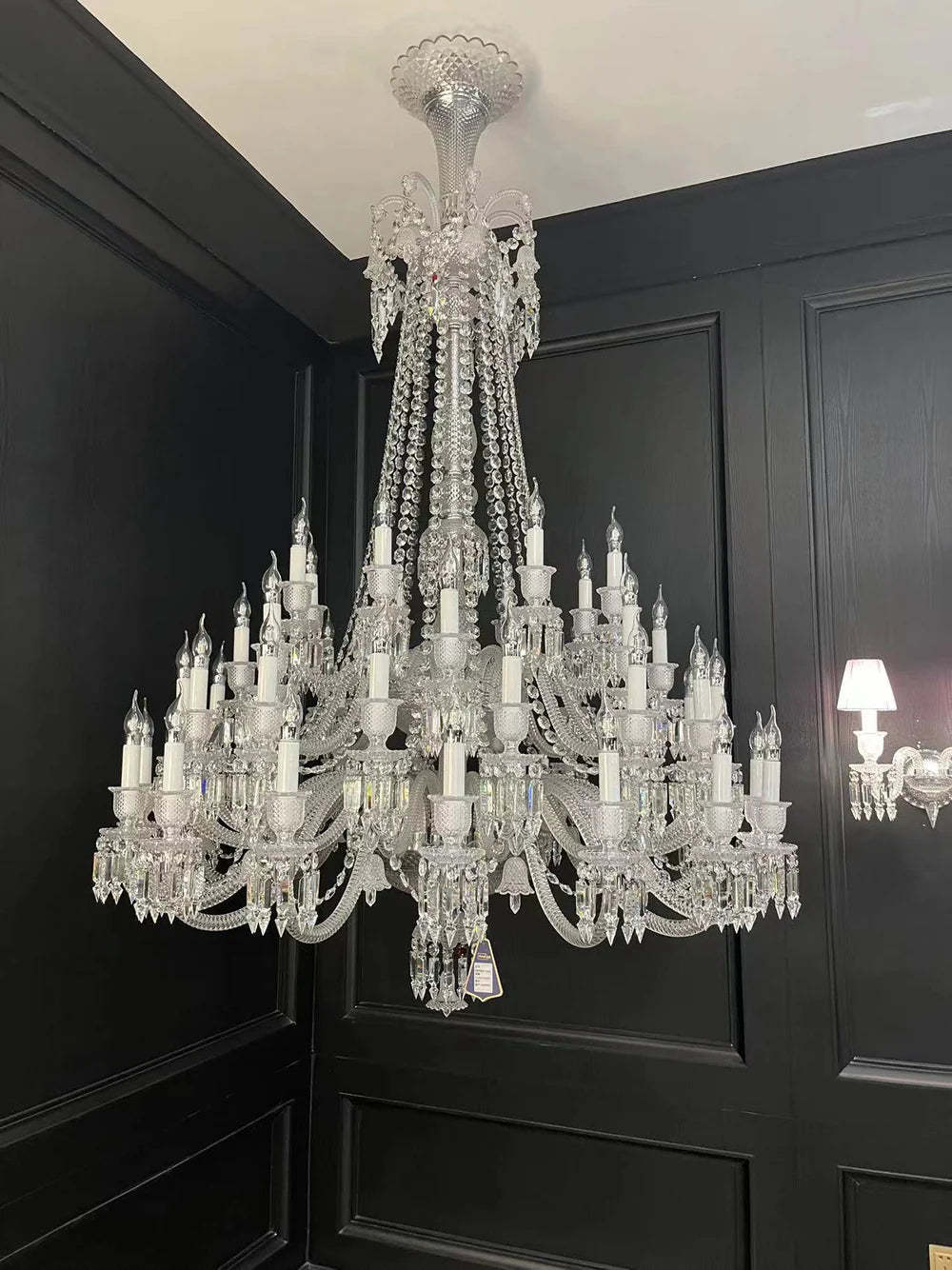 Light Luxury Classic Long Version Tiered Candle Light Crystal Chandelier for High-ceiling Rooms/Living Room