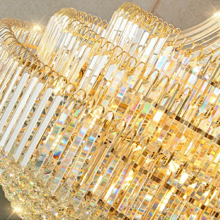 Golden Era Grand Cascade Clear Crystal Chandelier for High Ceiling