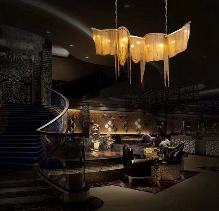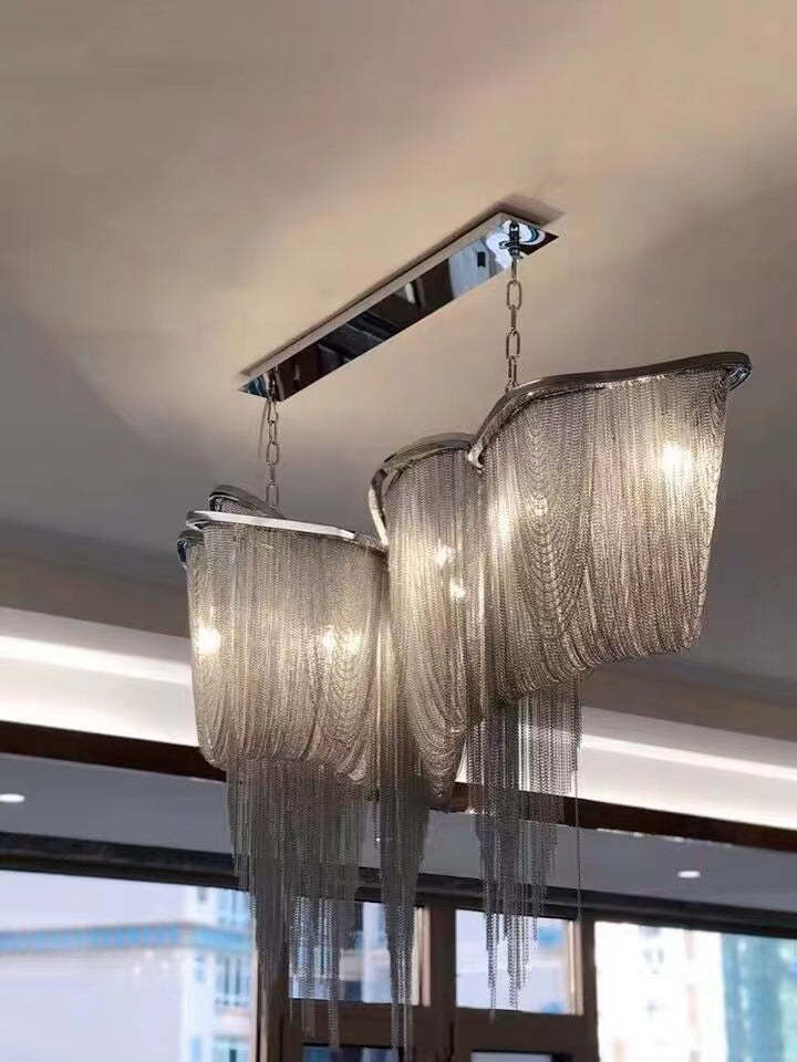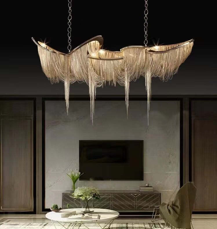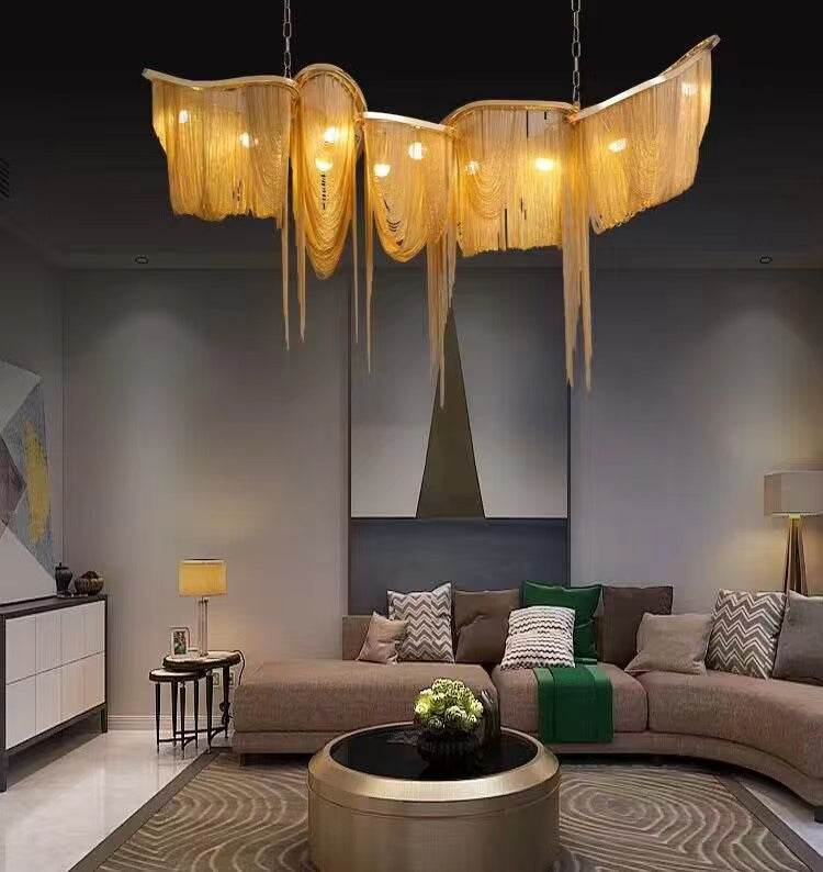 Luxury Tassel Linear Art Crystal Chandelier Italian Gold/Sliver Ceiling Dining Table Light Fixture