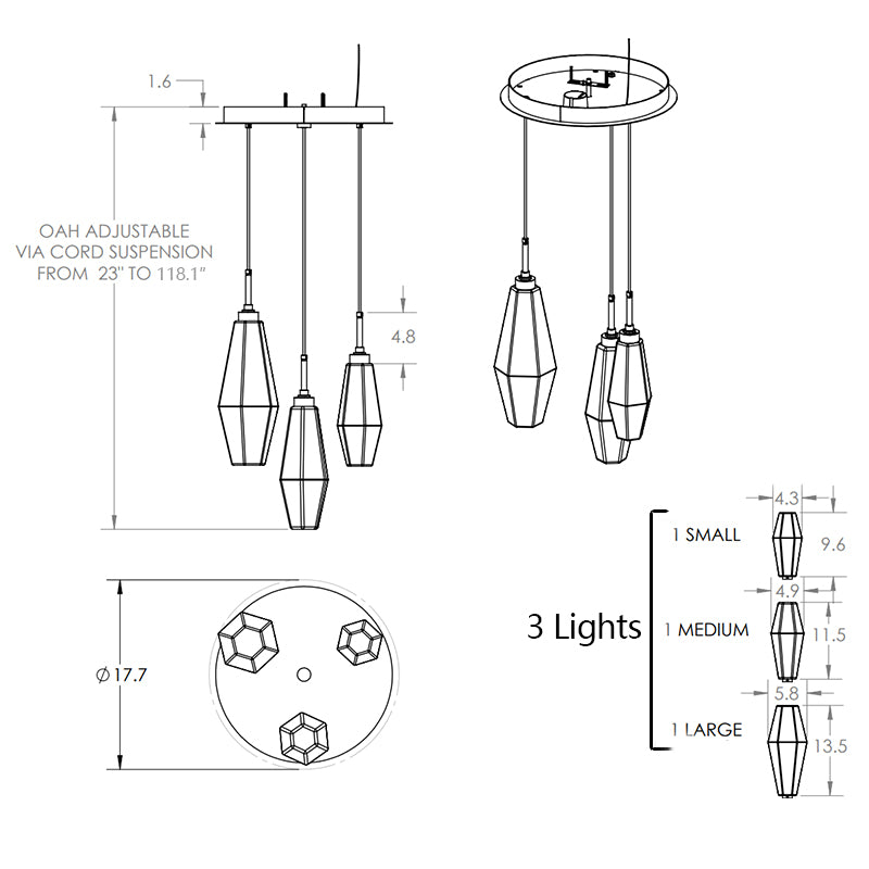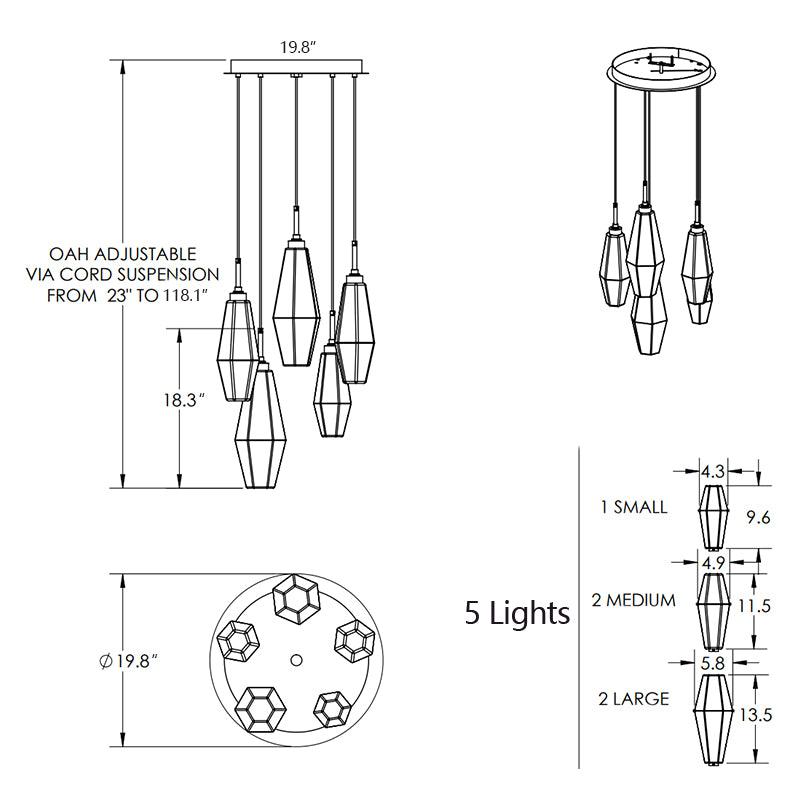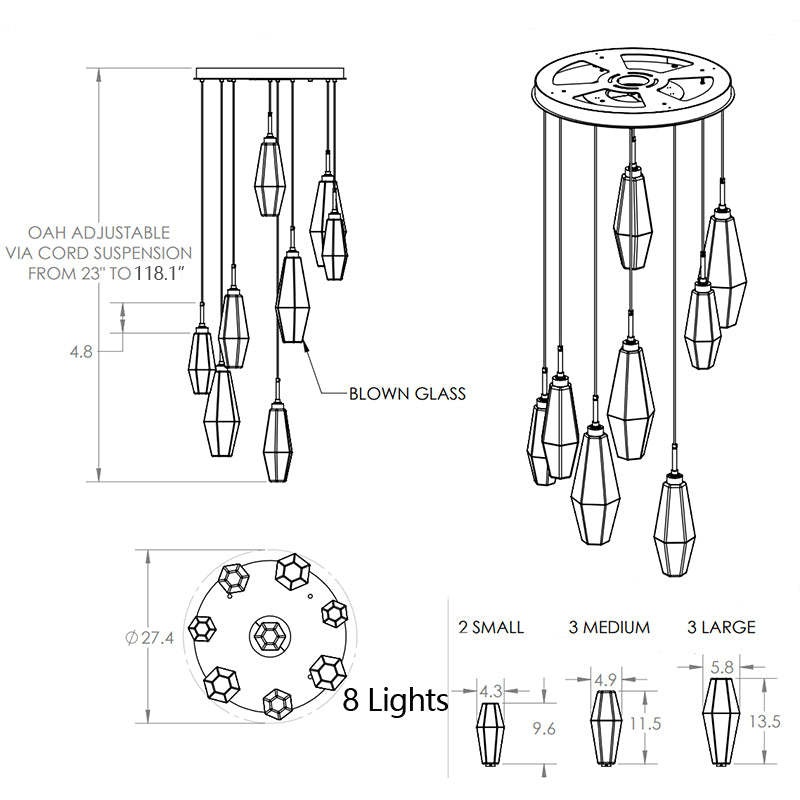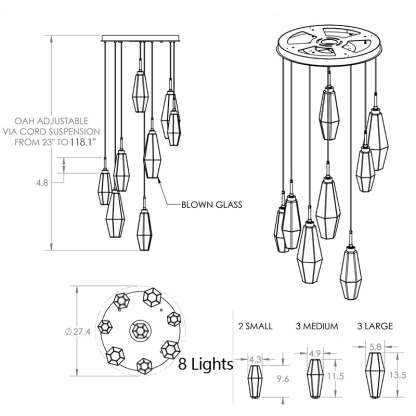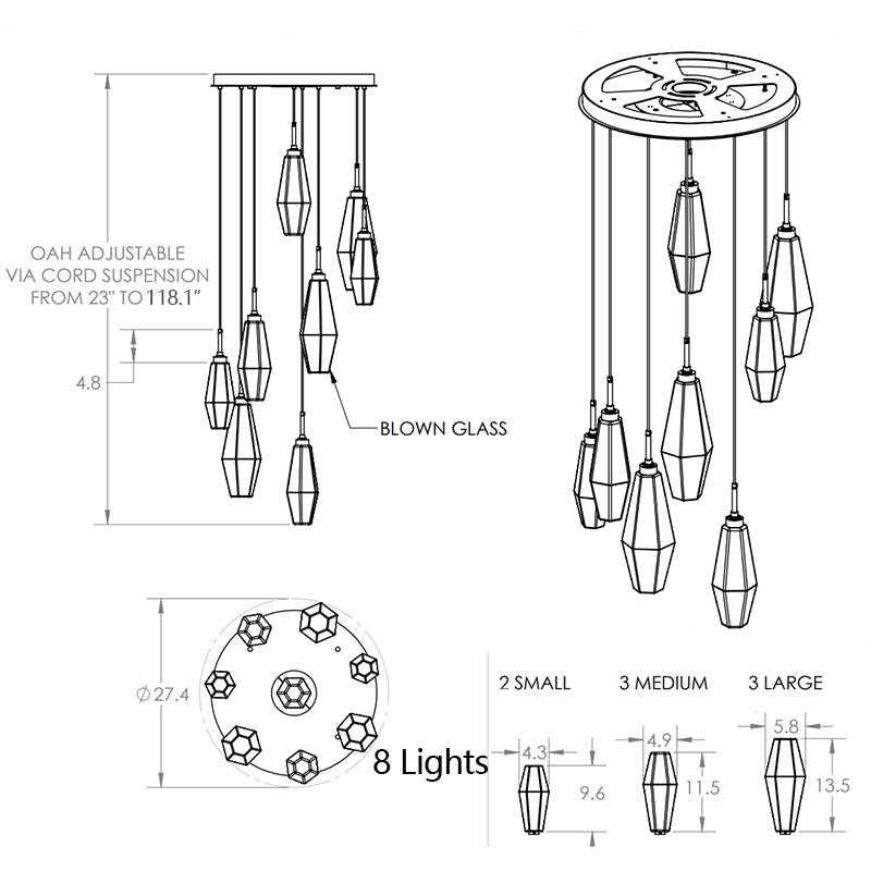 Express: Most wall sconces and pendants + Some small size Chandeliers