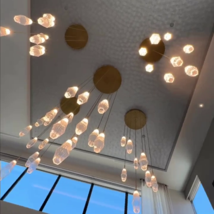 Modern Artisan Crafted Geometric Optic Glass Pendant for Staircase/Foyer/Entryway/Hallway