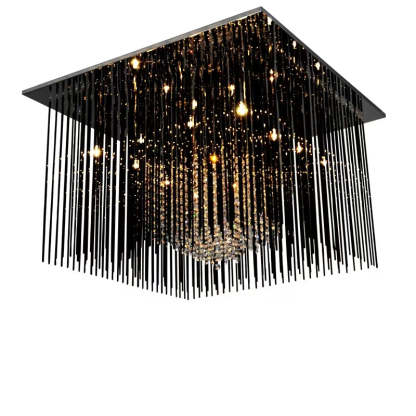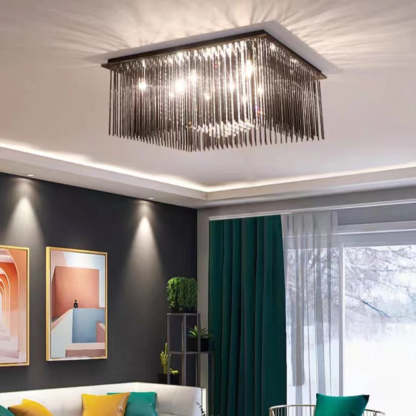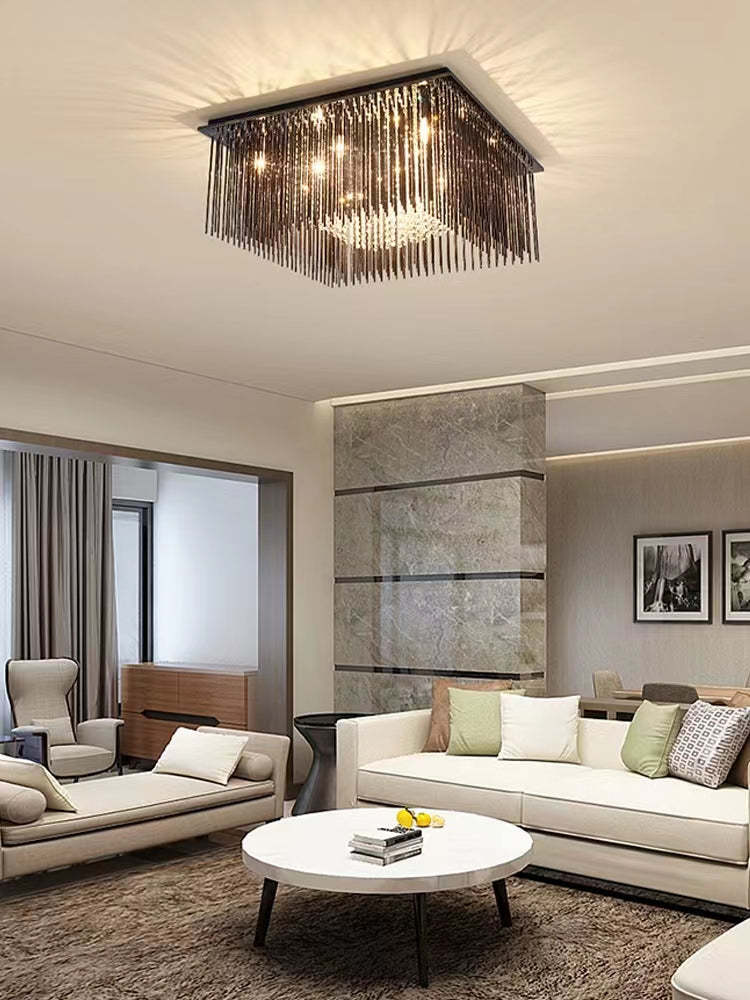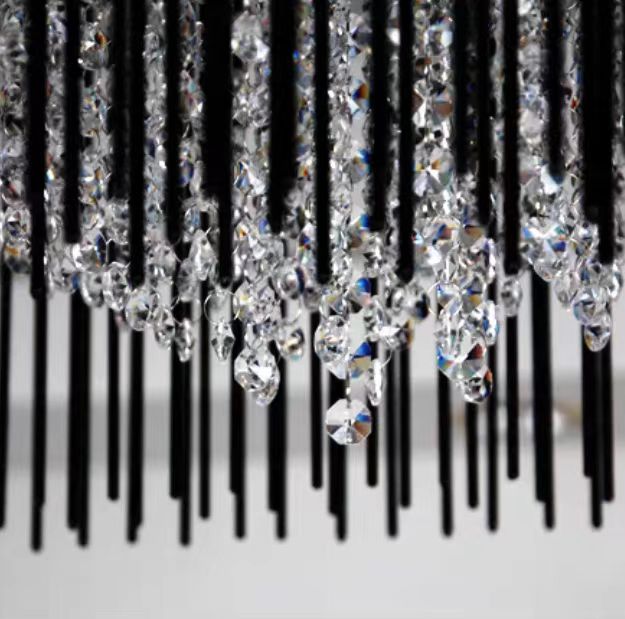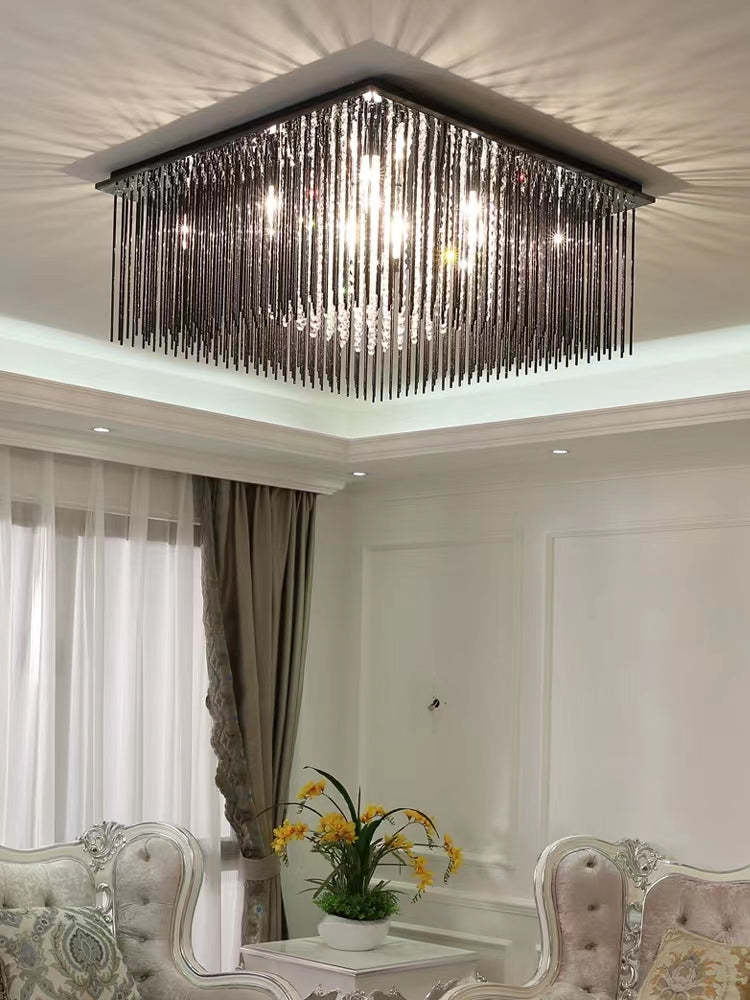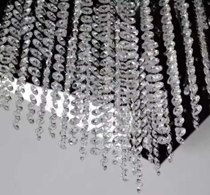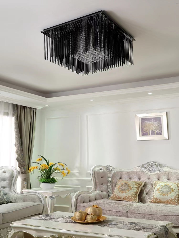 Modern Black Glass Tassel Crystal Pendant Flush Mount Chandelier for Living Room/Bedroom/Study
