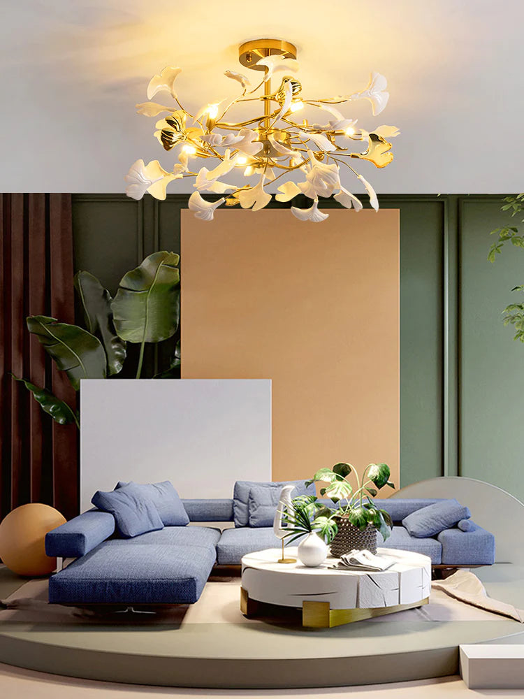 Modern Ceramic Ginkgo Chandelier for Living Room/Bedroom