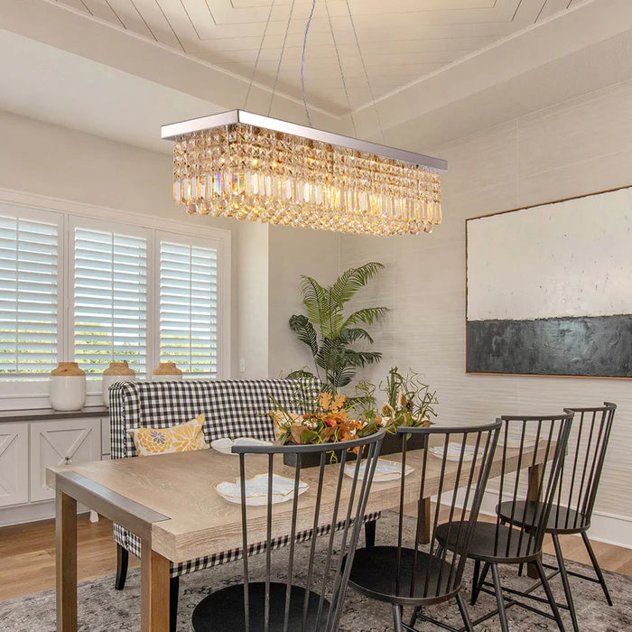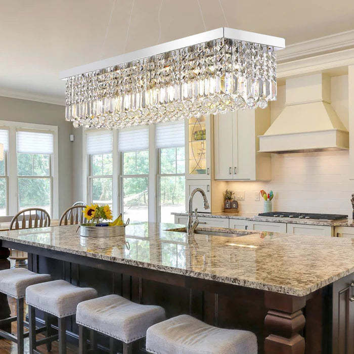 Modern Crystal Light Fixtures Rectangle Chandelier For Kitchen Island/Dining Room