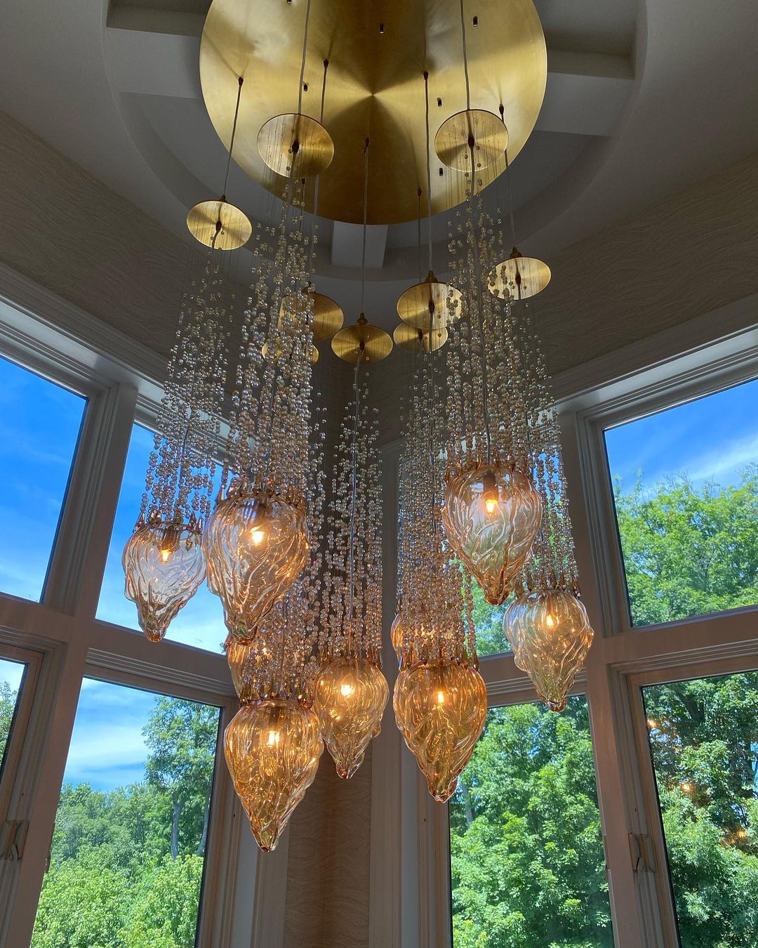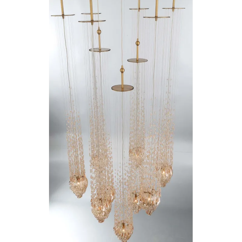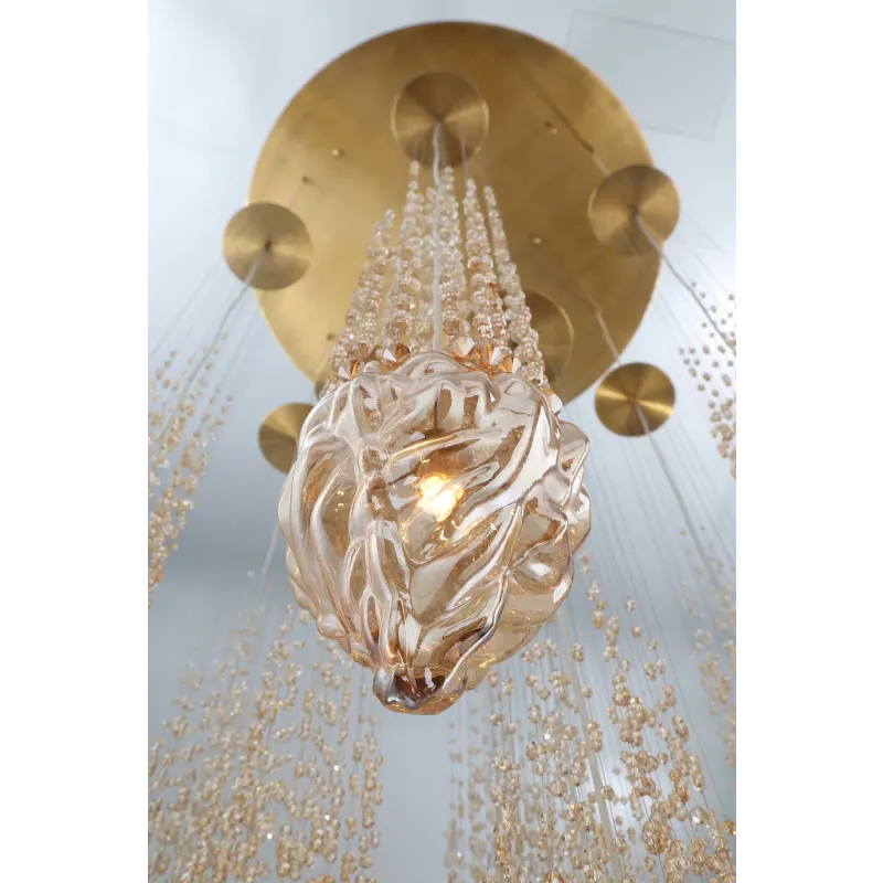 Modern Floating Blown Amber Glass Chandelier for High-ceiling