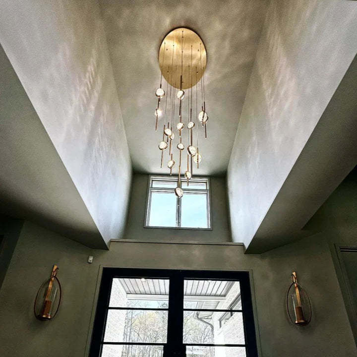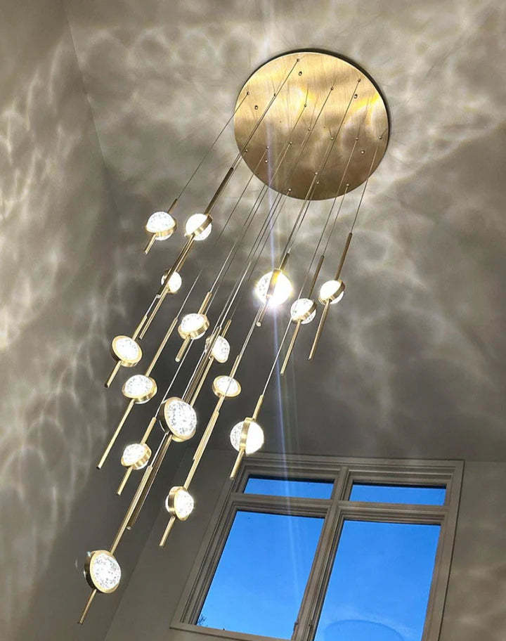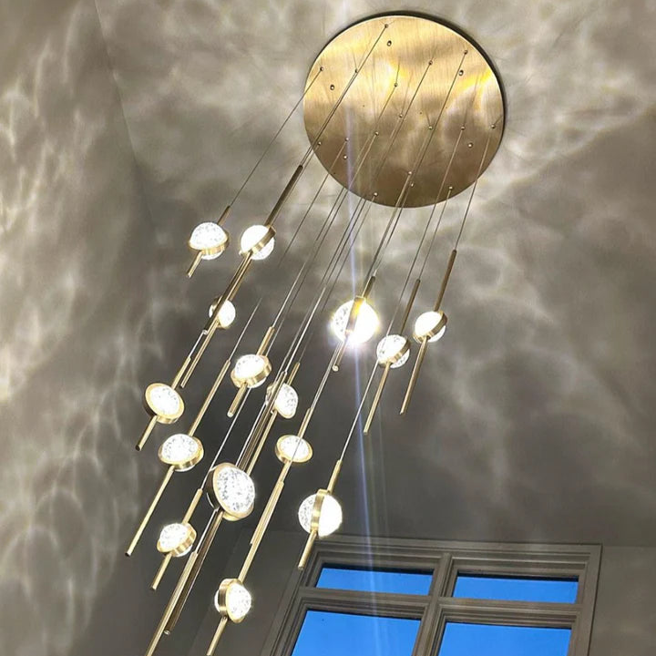 Modern Floating Galss Ball Brass Pendant Light for High-ceiling