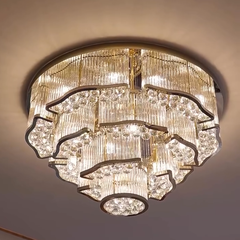 Modern Flush Mounted 4-Tier Crystal Chandelier for Low Ceiling