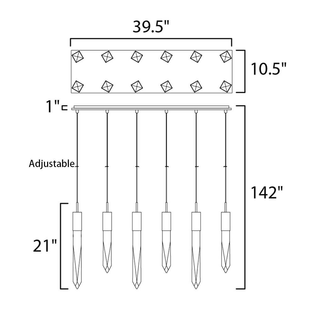 Modern Light Luxury Round/Rectangle Floating Glacier Crystal Chandelier in Black Finish for Kitchen Island/ Staircase/Living Room