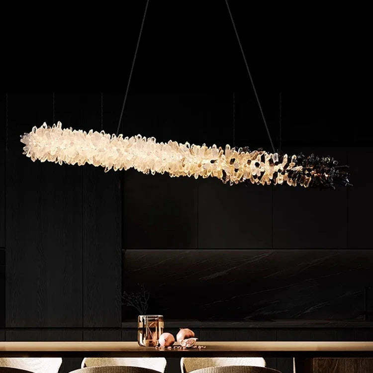 Modern Linear Natural Crystal Stick Chandelier