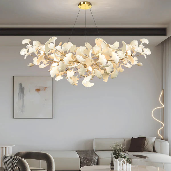 Modern Luxury Linear Ginkgo Ceramic Chandelier for Dining Room/Kitchen Island