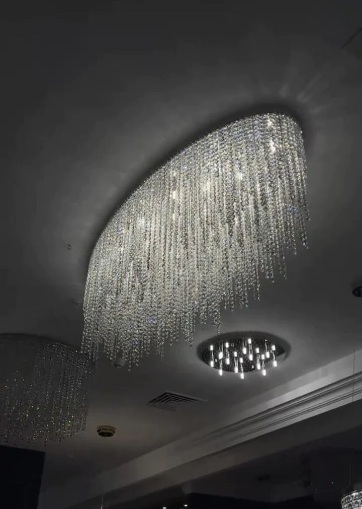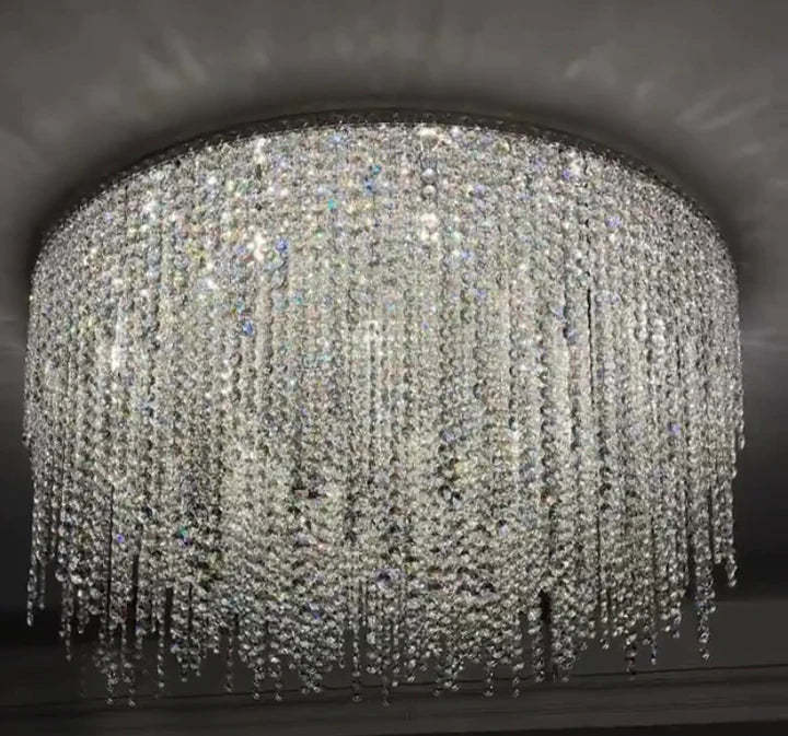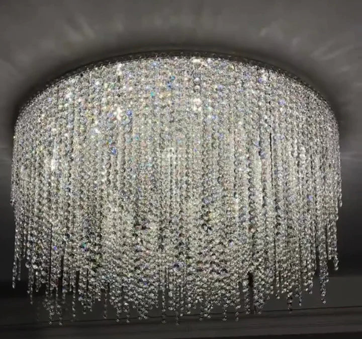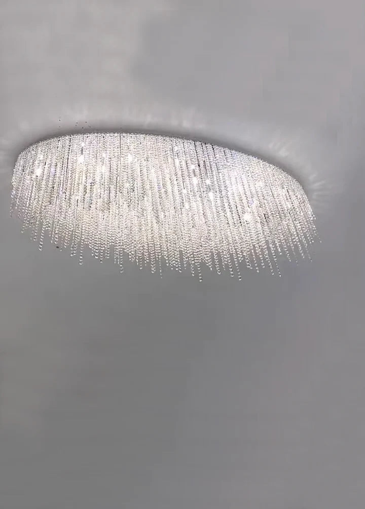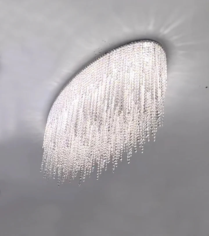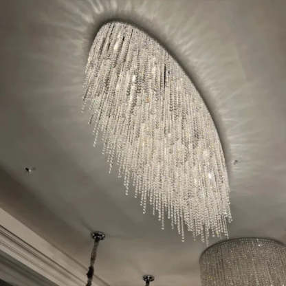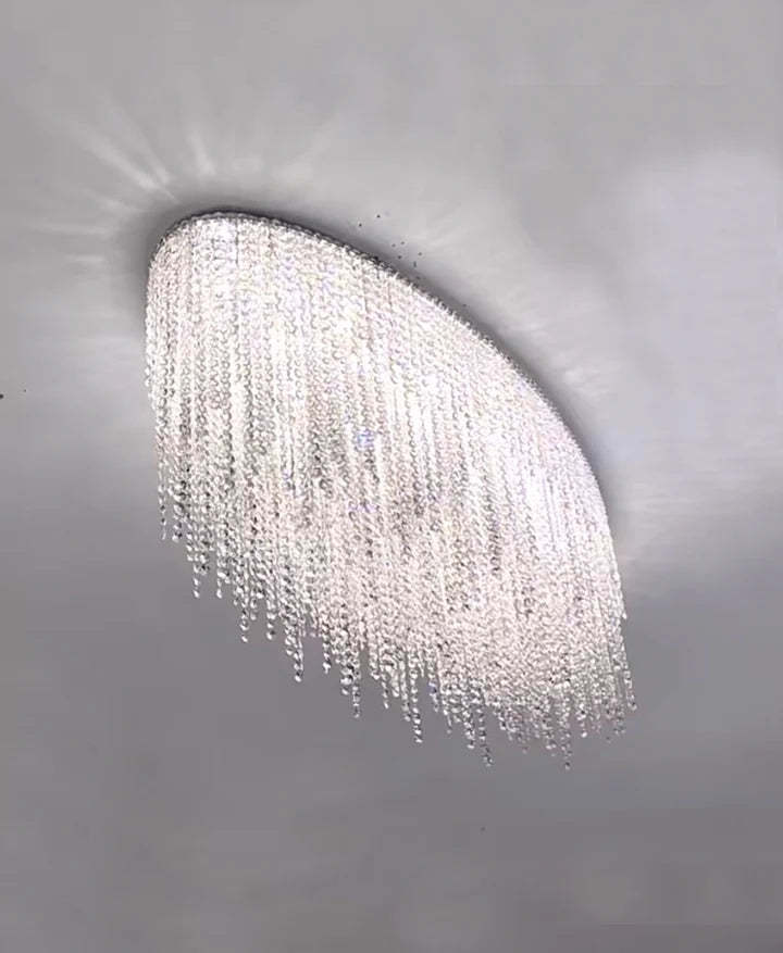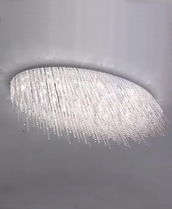 Modern Luxury Tassel Flush Mount Oval/Round Crystal Chandelier Set for Living Room/Bedroom/Dining Room