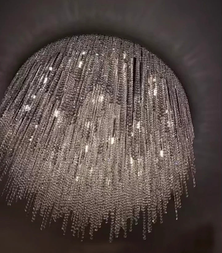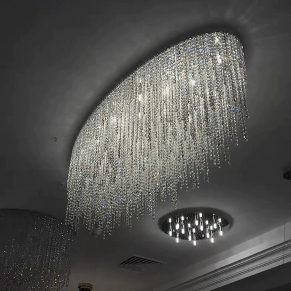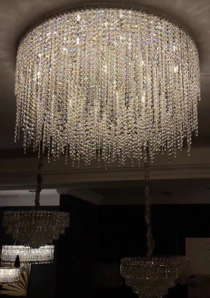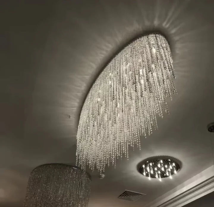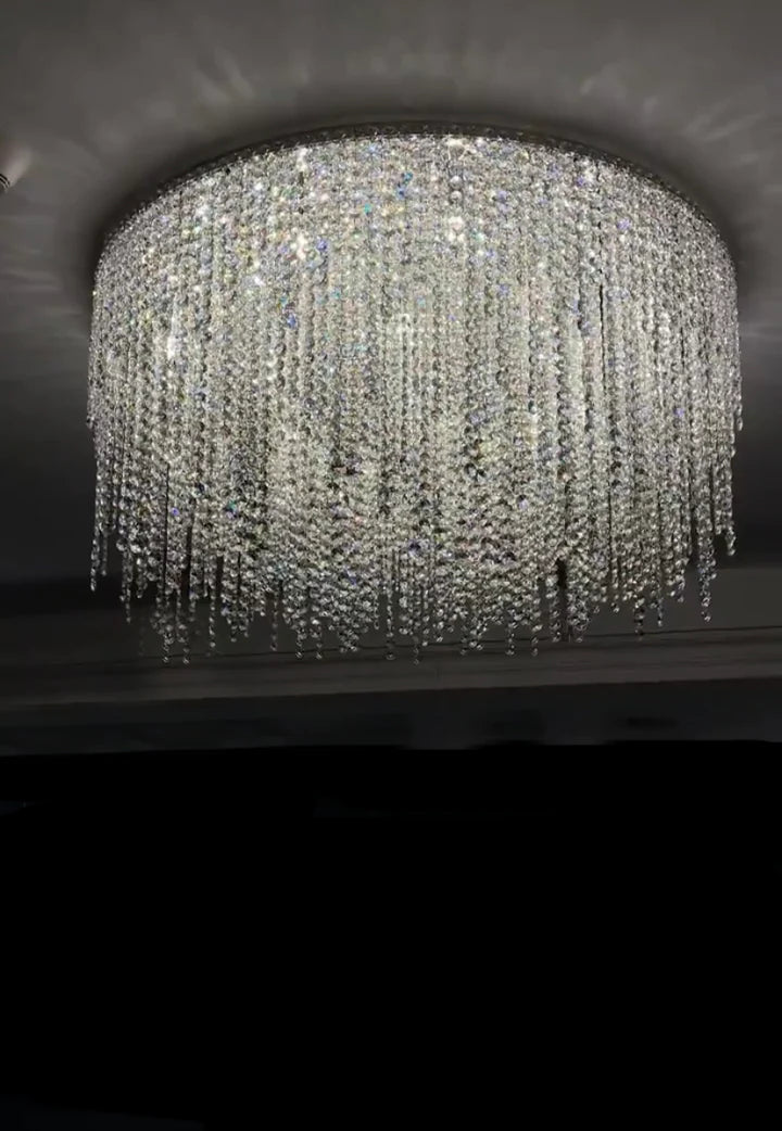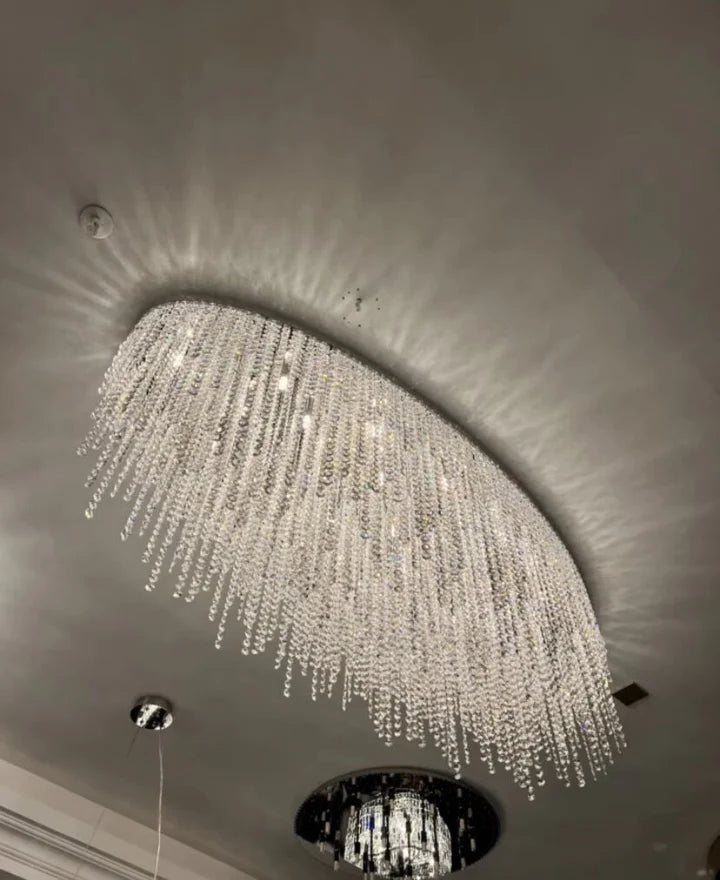 Modern Luxury Tassel Flush Mount Oval/Round Crystal Chandelier Set for Living Room/Bedroom/Dining Room