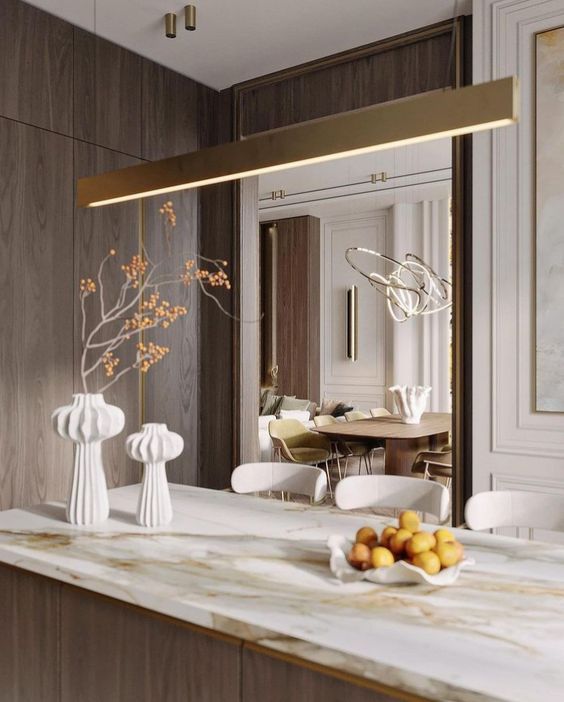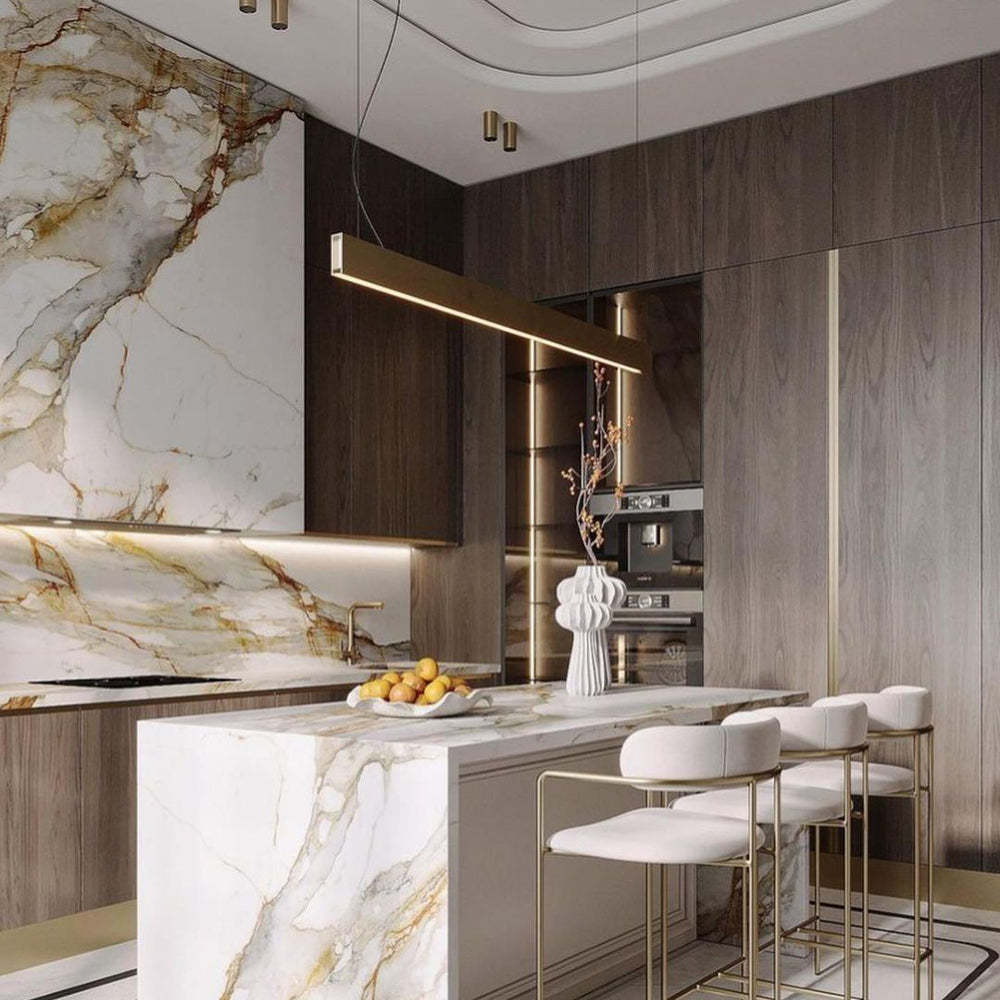 Nordic Minimalism Long Dining Table Pendant Light Antique Gold LED Creative Light Fixture For Kitchen Island/Bar