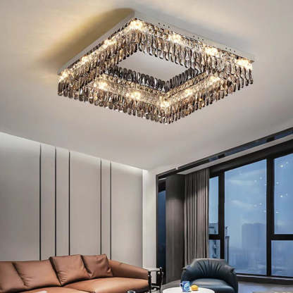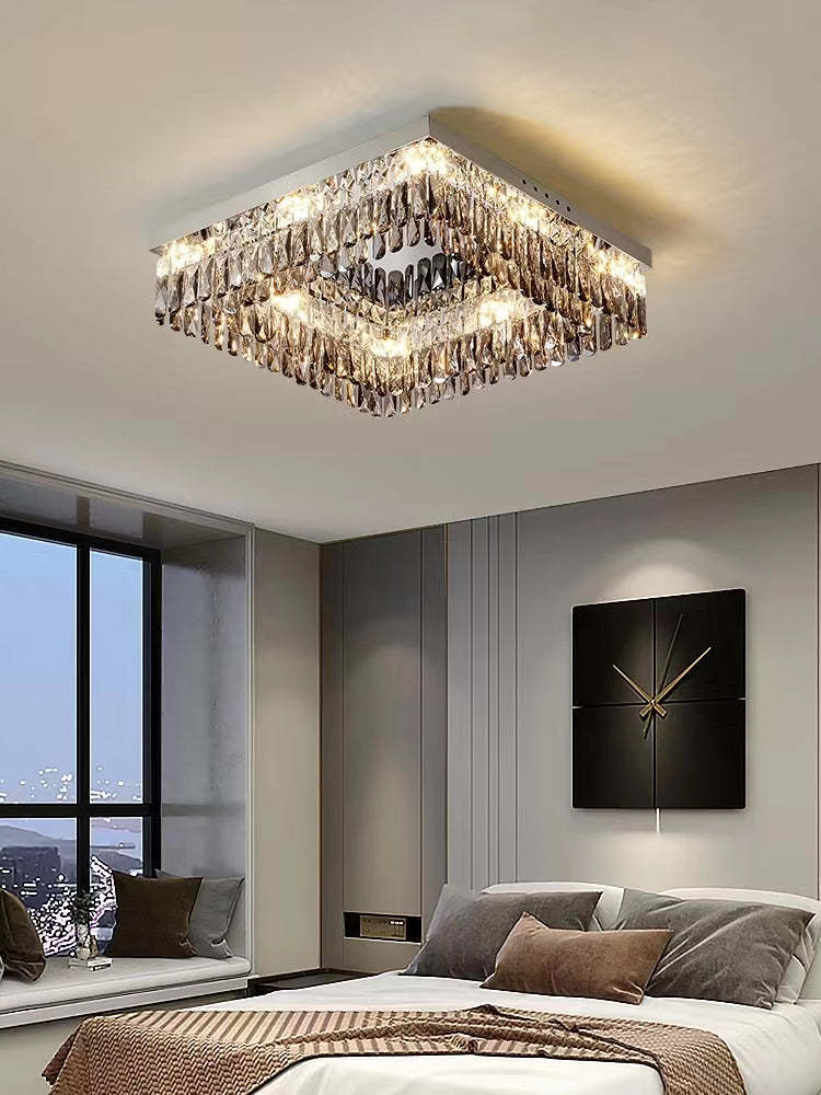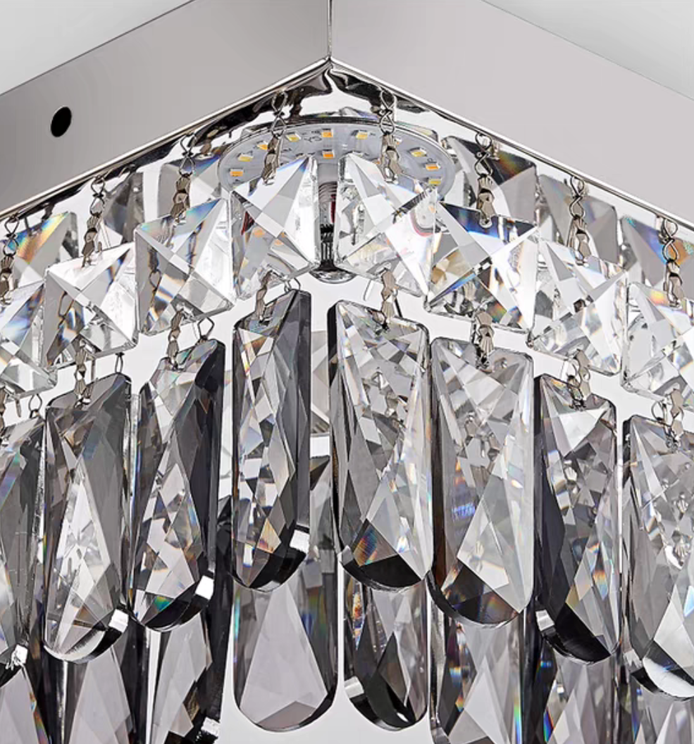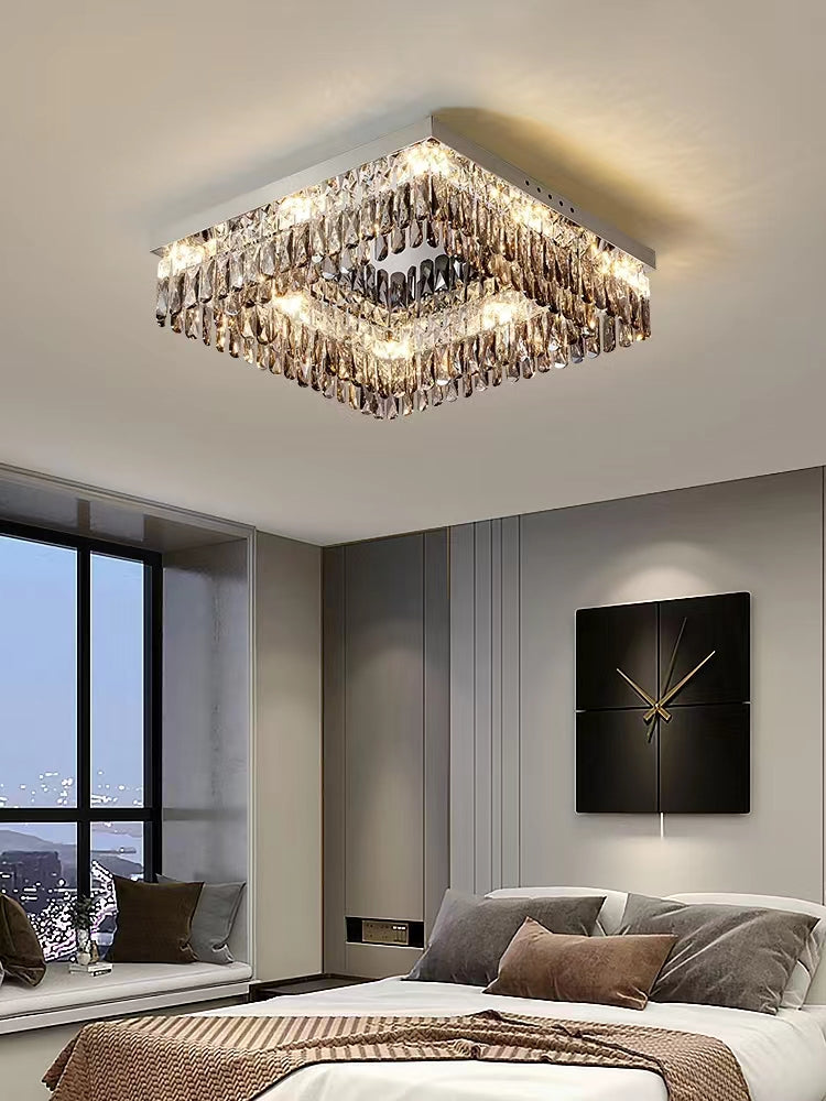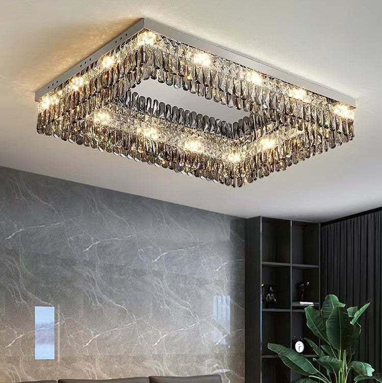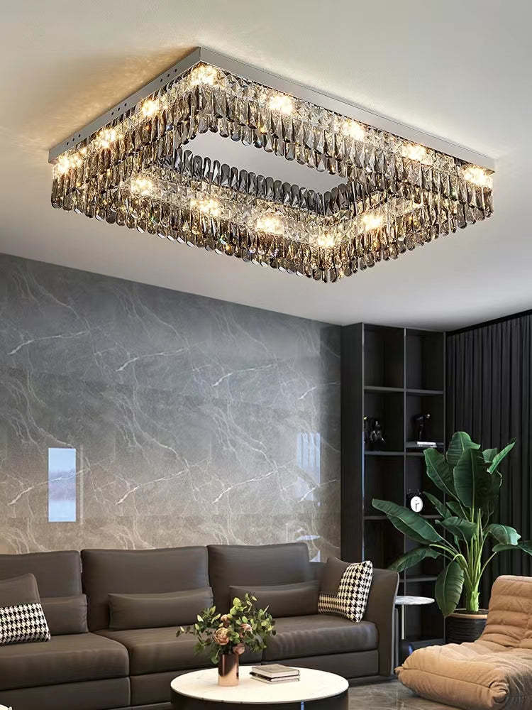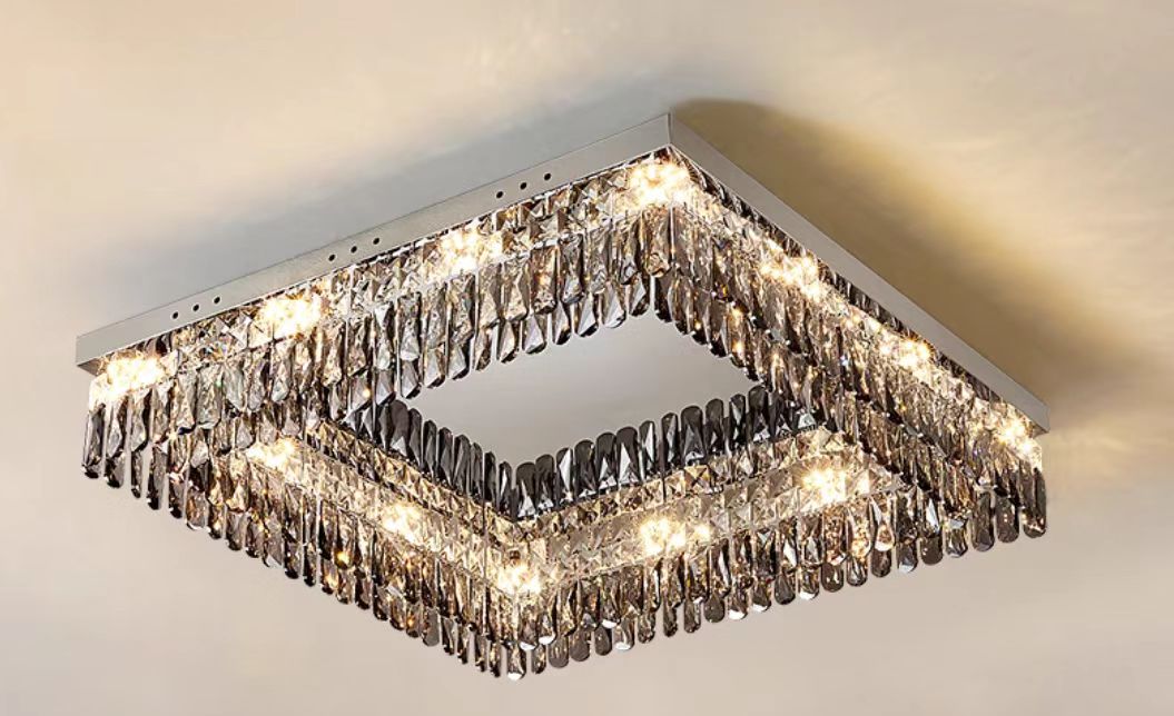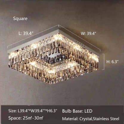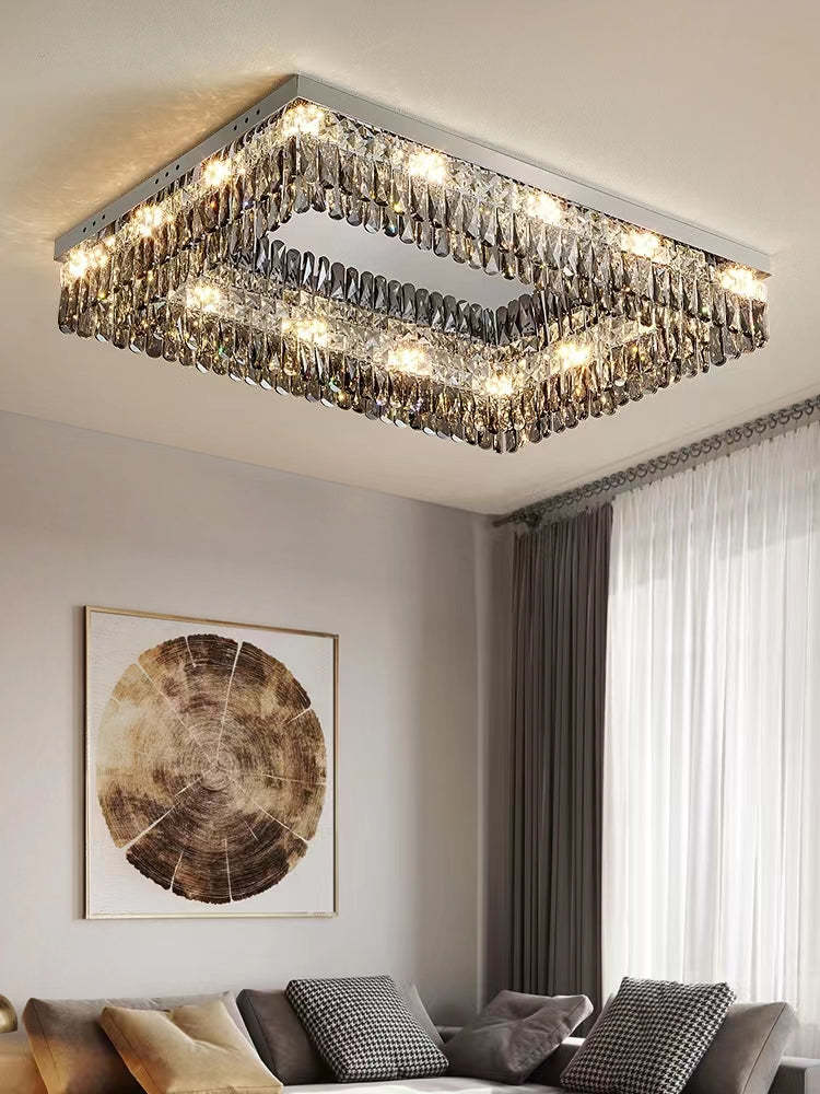 Oversize Modern Mirror Stainless Steel Crystal Pendant Flush Mount Chandelier for Living Room/Bedroom