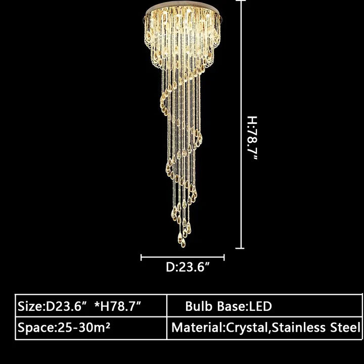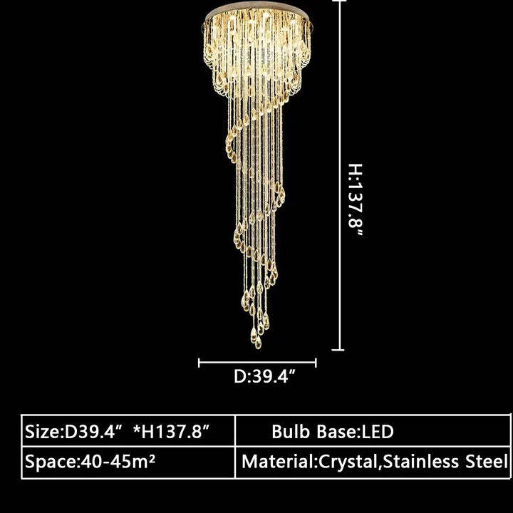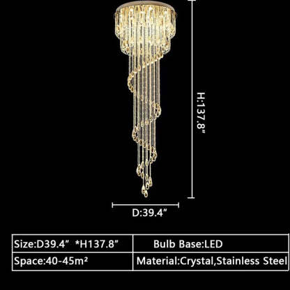 Oversized Modern Cascade Spiral Crystal Staircase Chandelier For Duplex Building