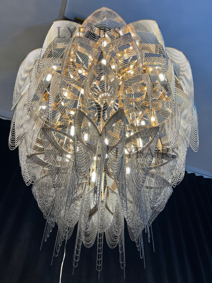 Oversized Post-Modern Aluminium Chain Tassel Pendant Chandelier for Large Living Room/Staircase/Villa