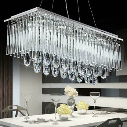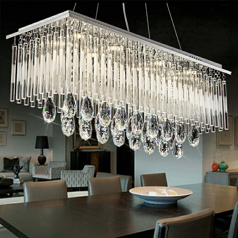 Rectangle Kitchen Island Crystal Drops Chandelier Ceiling Pendant Light For Long Dining Table