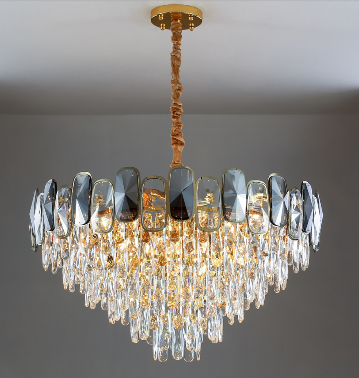 Round/Rectangle Smoky Gray Crystal Pendant Chandelier Ceiling Fixtures Light For Living Room/Dining Room/Entryway